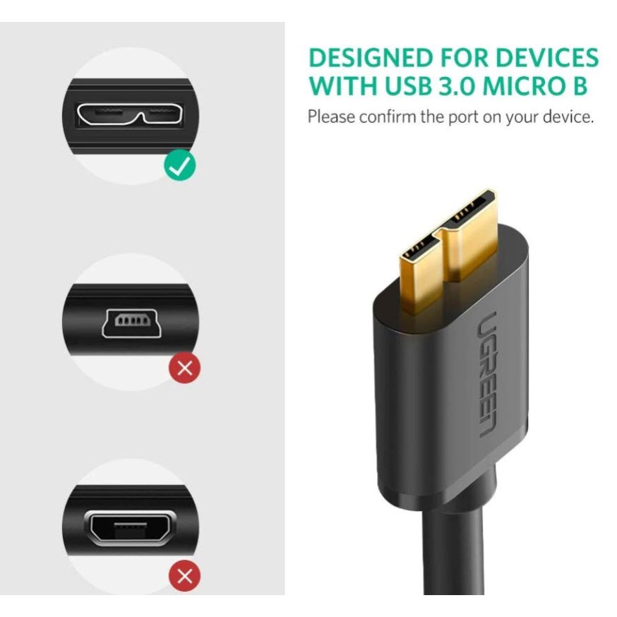 Ugreen (US130/US374) USB 3.0 Micro USB Cable 5V 2.1A Fast Charging Data Phone Cables,Hard Disk,Camera(PVC/Braided)