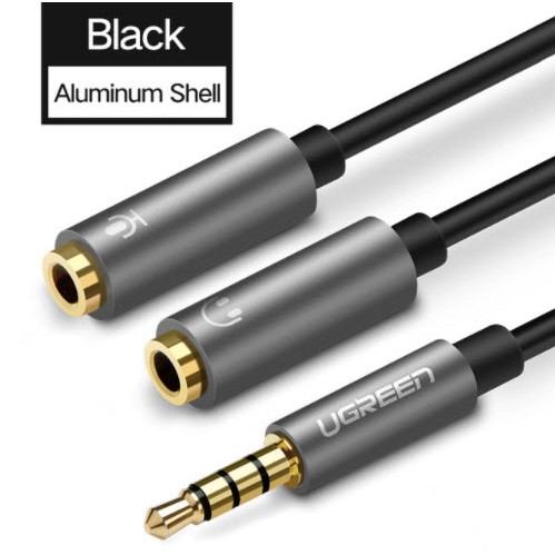 Ugreen (AV141) Audio Cable 3.5mm Jack Microphone Splitter cable 1 Male to 2 Female black (ABS/Aluminum Shell)