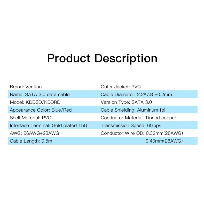 Vention (50cm.) Sata 3.0 Super Speed 6G Cable
