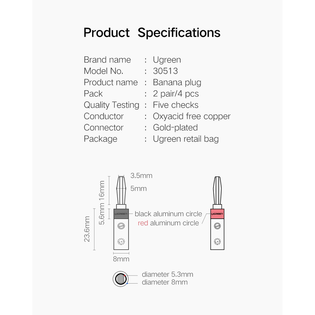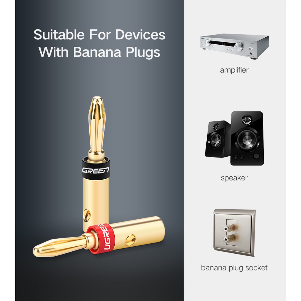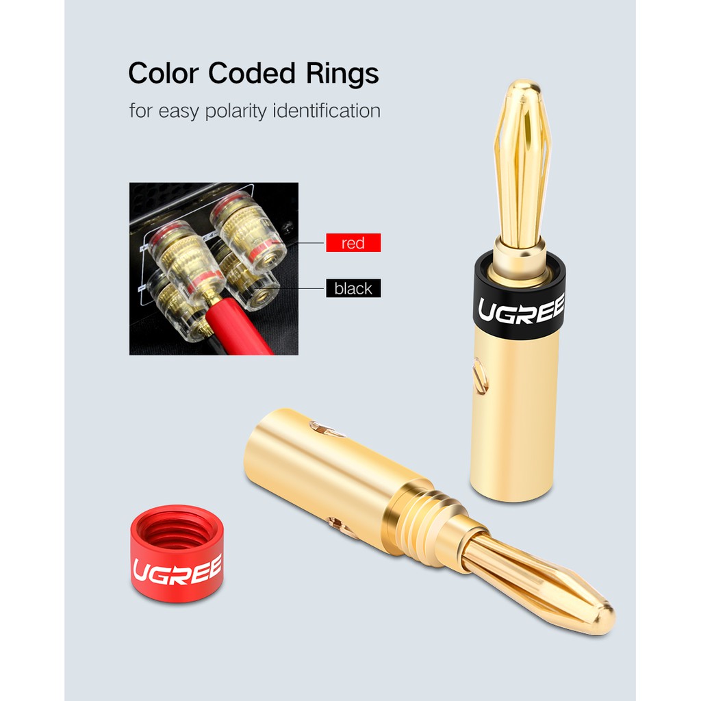 UGREEN (30513) 2Pair/4 pcs 24K Gold-Plated Banana Plug Connector Corrosion-Resistant Banana Connector for Vedio Speaker