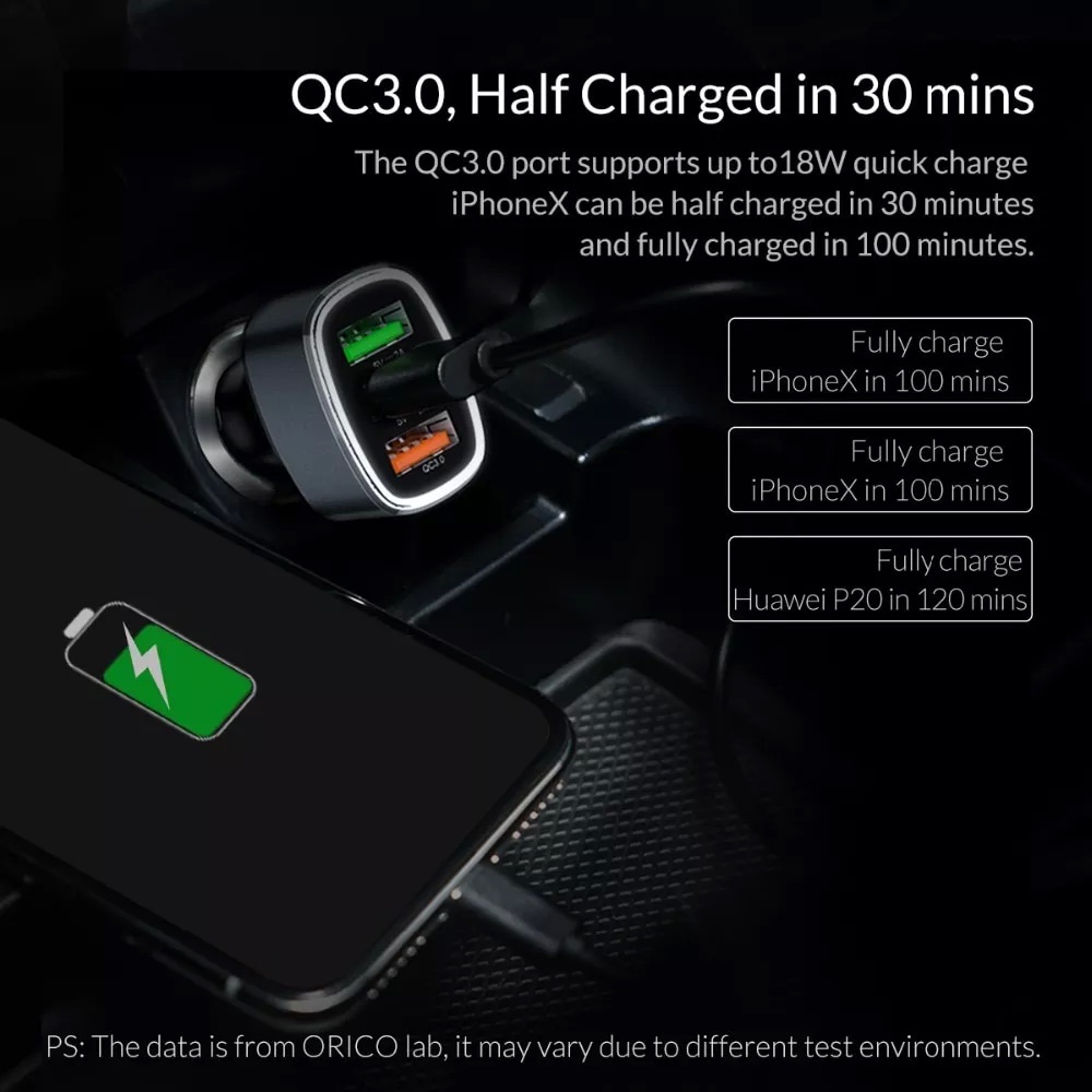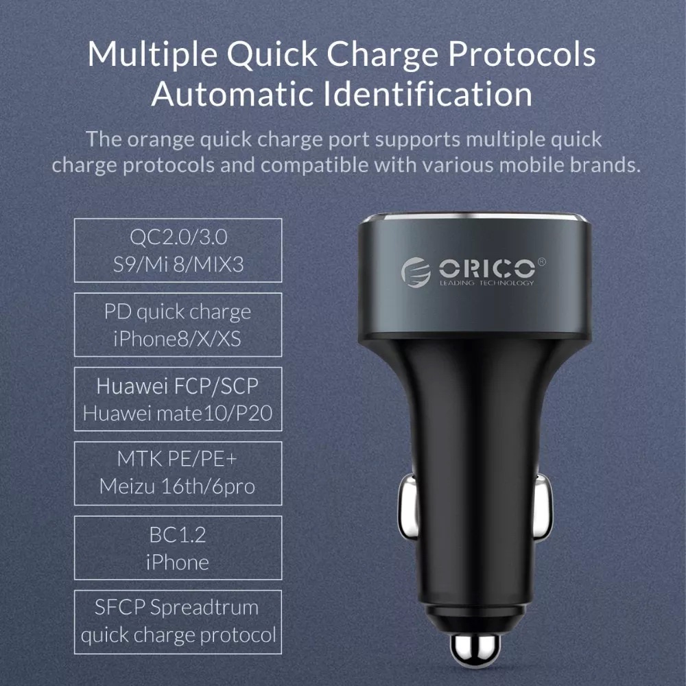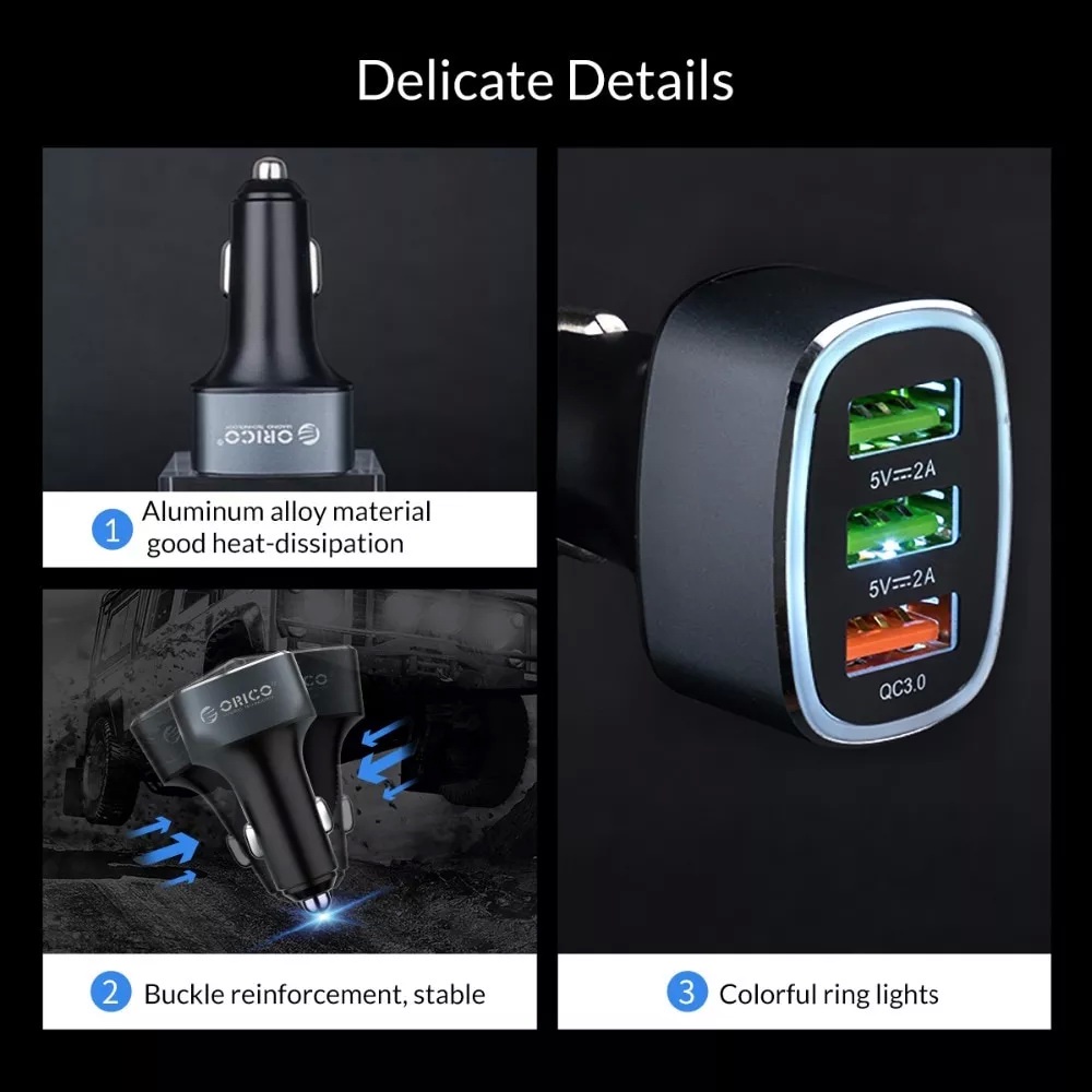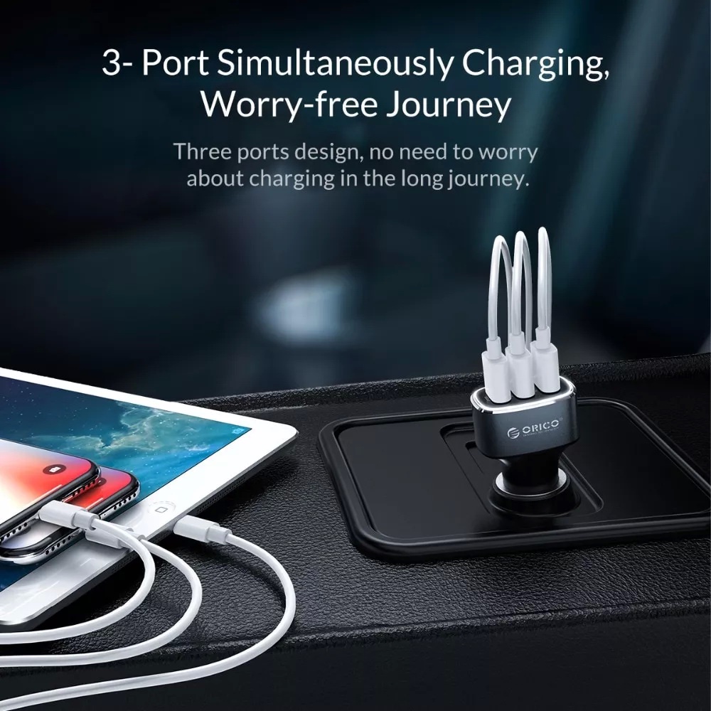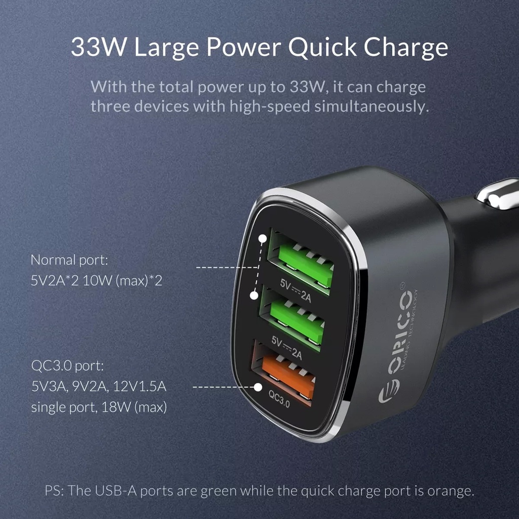 ORICO(UPB-3U) 33W 3 USB Ports Quick Charge QC 3.0 Car Charger Mobile Phone Fast Car-Charger