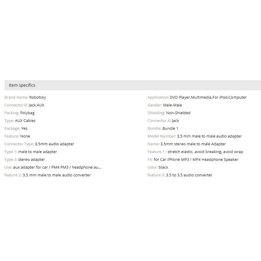 (สีเงิน/สีดำ) 3.5mm Audio Adapter 3.5mm Plug Male to 3.5mm Plug Straight Stereo Adapter Converter Connector