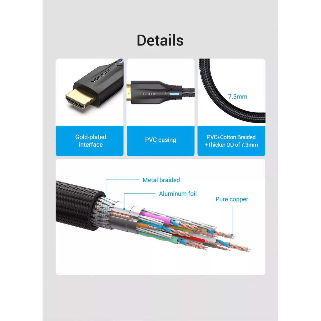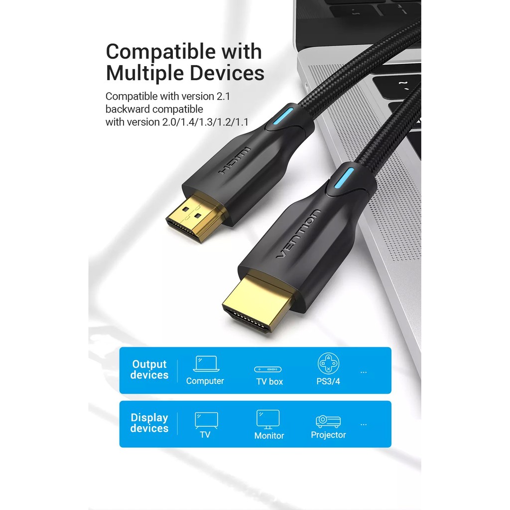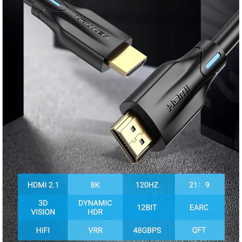 (HDMI 2.1) Vention HDMI 2.1 HDR 4K(120Hz)/8K(60Hz) 48Gbps Extender Audio Video 8K HDMI Cable