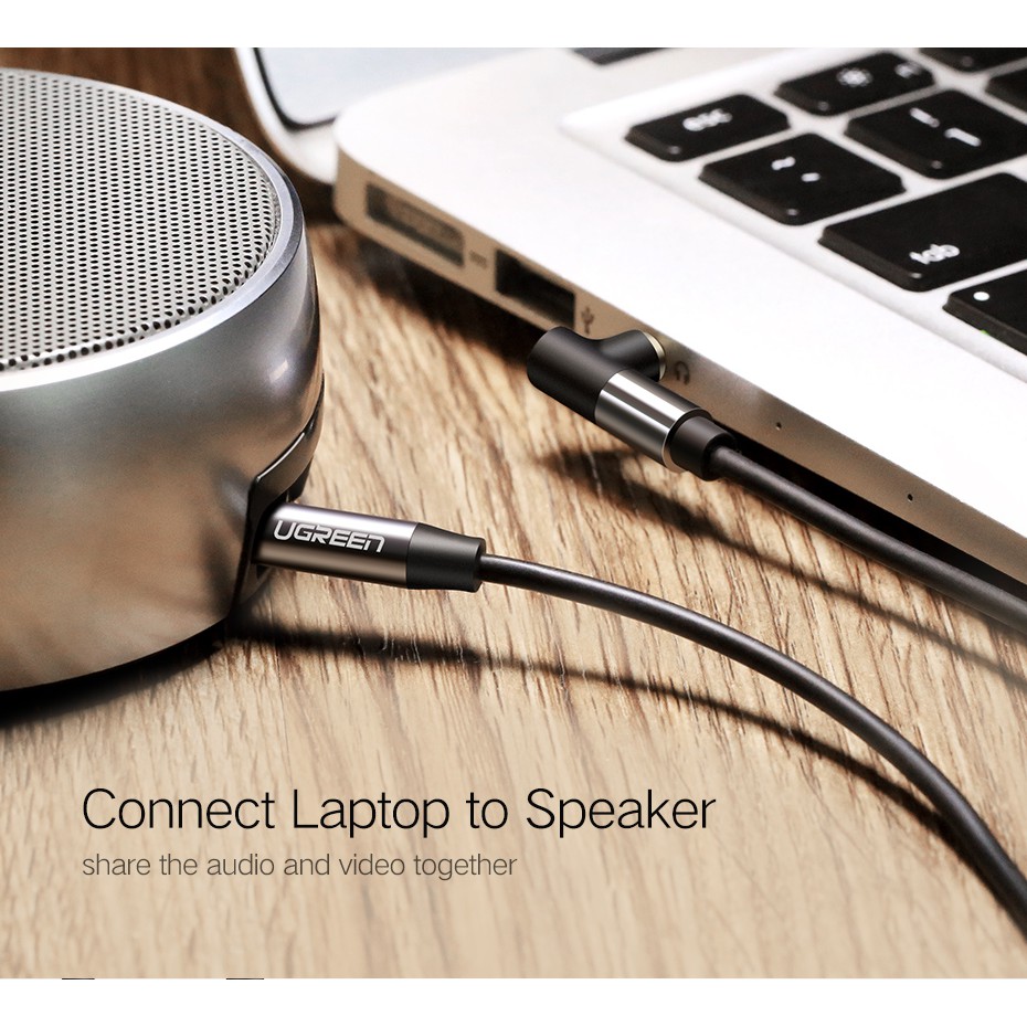 Ugreen (AV139 Metal/Black)AUX cable 3.5mm audio cable(straight to 90 Angle)