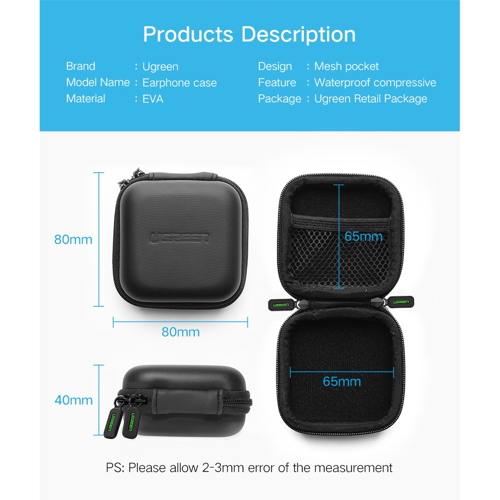 Ugreen (LP128-40816) Accessories Case Hard Box Bag for Earphone Ear Pads USB Cable Charger Earphone Case