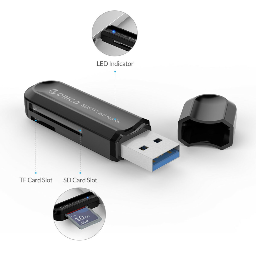 ORICO (CRS21) USB3.0 TF/SD Card Reader (สีขาว/ดำ)