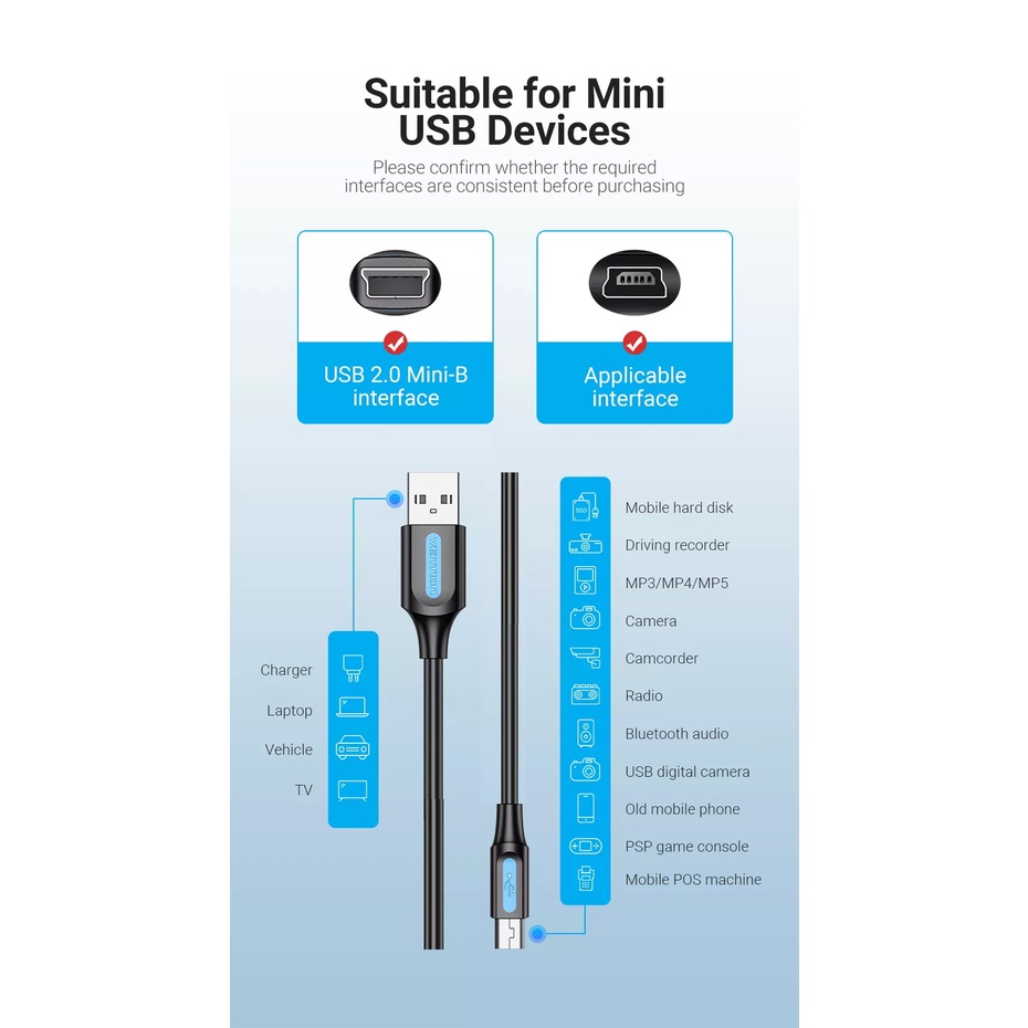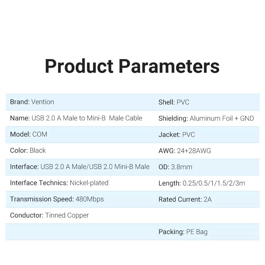 Vention (COM)USB 2.0 A Male to Mini-B Male Cable Mini USB Date Cable Fast Charge/Transfer Cable For Camera MP3 MP4 HD
