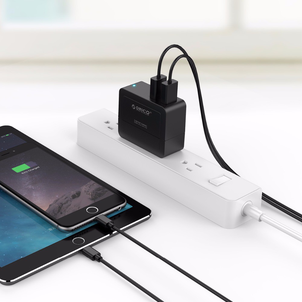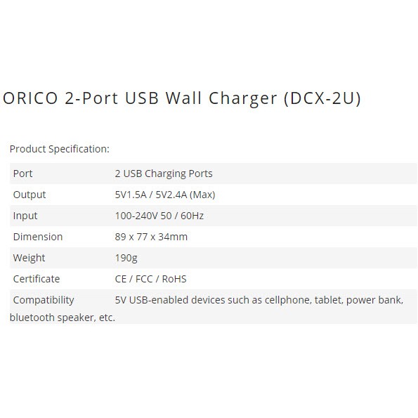 (DCX-2U-US-BK)สีดำORICO 5V2.4A 5V1.5A USB Charger US Plug Charger Adapter 12W Portable Smart Phone Charger