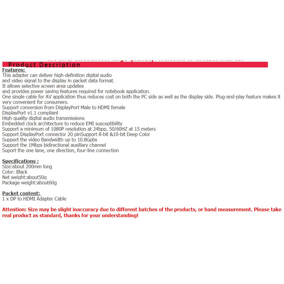 Displayport DP to HDMI Adapter Cable DP Displayport Male To HDMI Female Converter Adapter Cable For PC Laptop