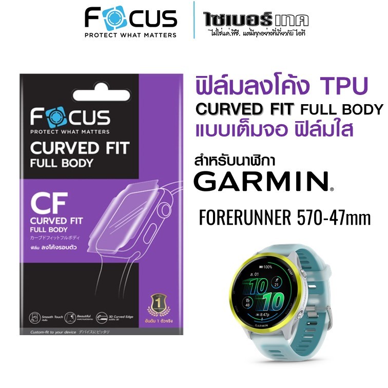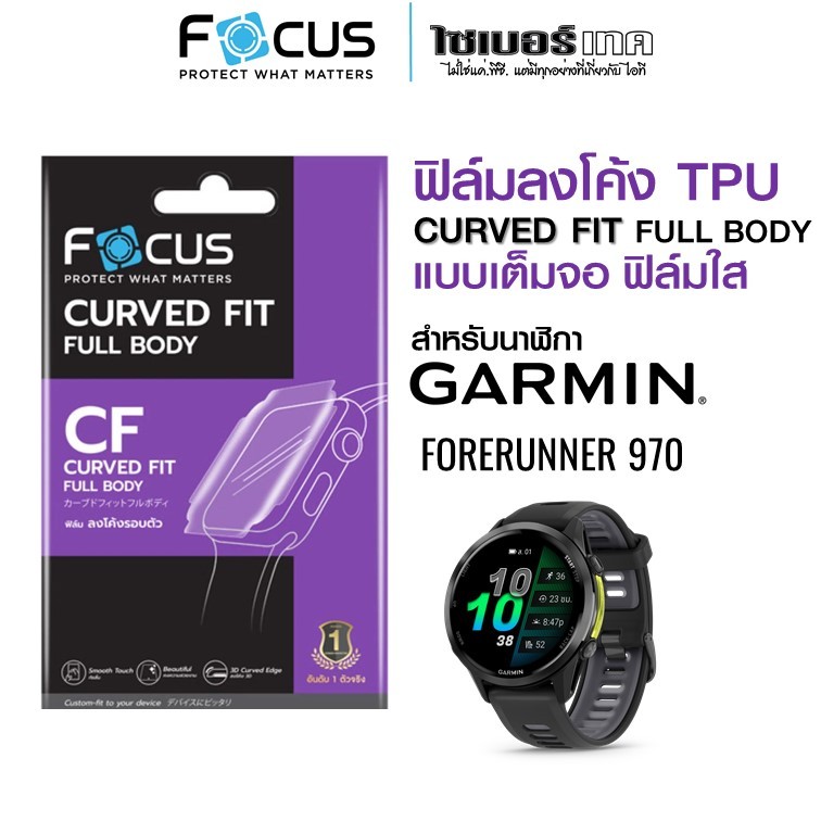 FOCUS ฟิล์มกันรอย Garmin Forerunner 970 / 570 ฟิล์มใสกันรอยลงโค้งเต็มจอ TPU (CURVED FIT TPU)
