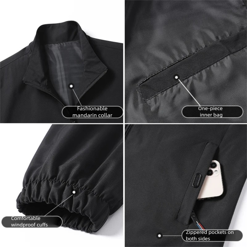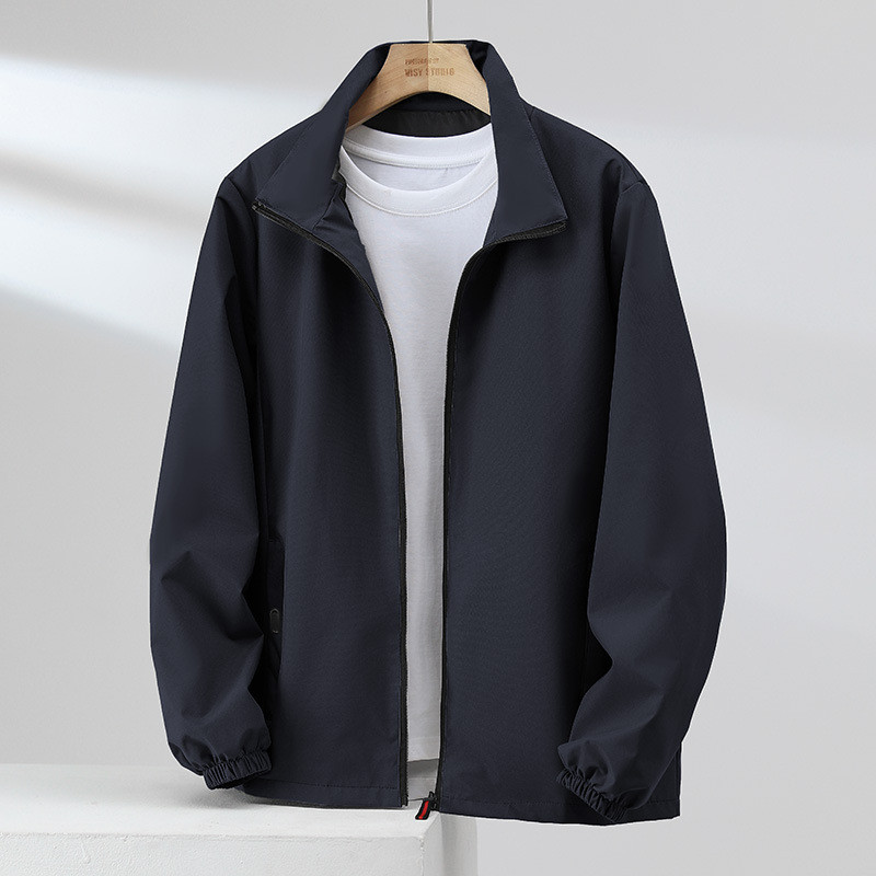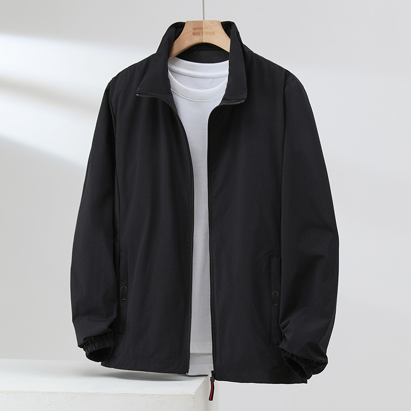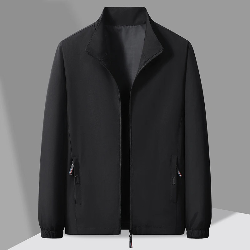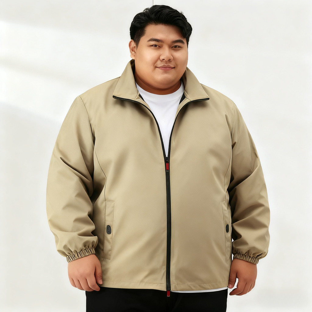 ขนาดใหญ่เกินไป 180กิโลกรัม ผู้ชายสีดํายืนปกซิปเสื้อกลางแจ้งคาร์ดิแกนขนาดบวกแจ็คเก็ต กันลม