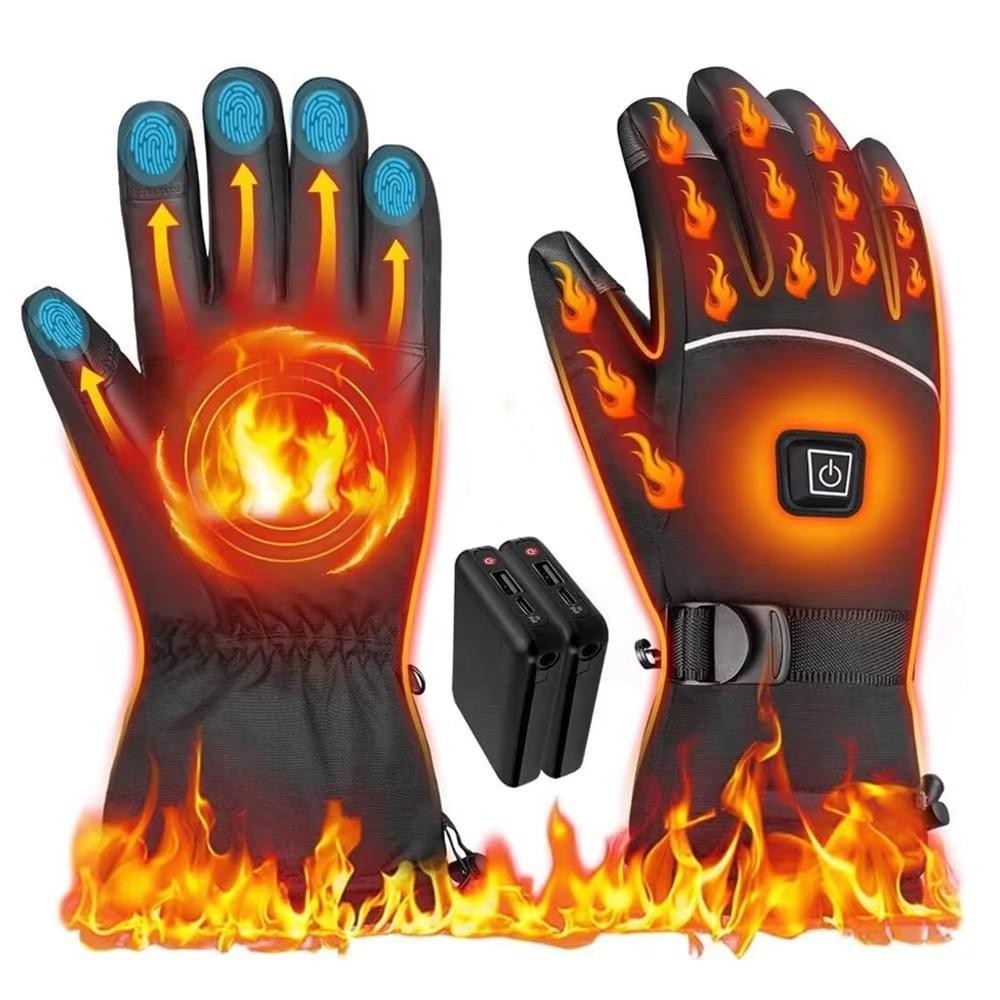โรวัน ถุงมืออุ่น,หน้าจอสัมผัสกันน้ําไฟฟ้าถุงมือความร้อน,สีดํามืออุ่น กันลม ลื่นสโนว์บอร์ดถุงมือสกีขี่จักรยานตกปลา นักขี่จักรย าน