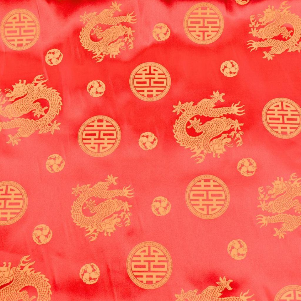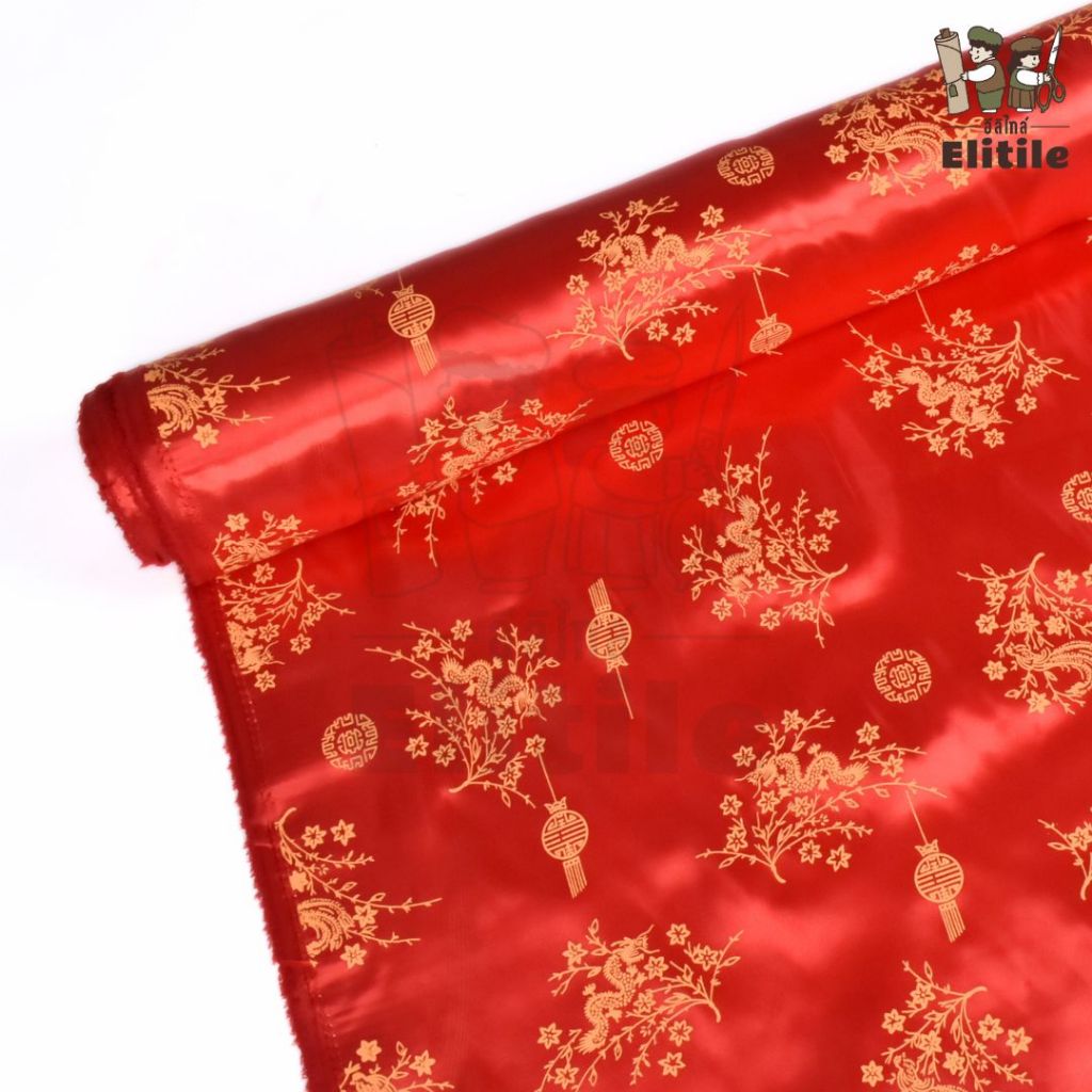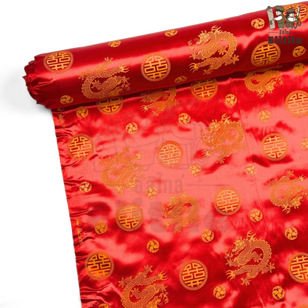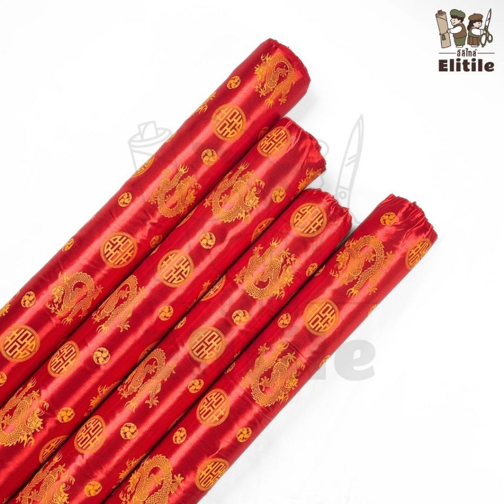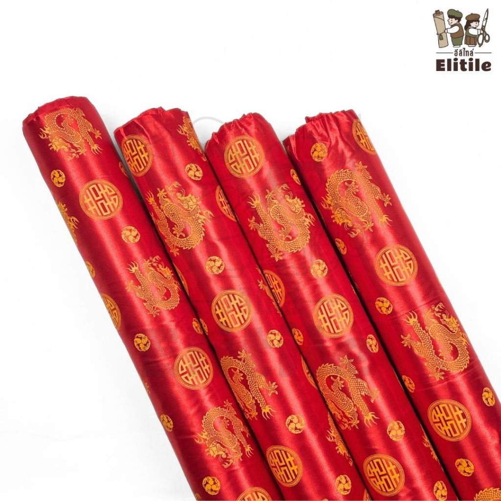 *มีส่งด่วน/Delivery*ผ้าสีแดงลายจีนลายมังกรทอง ลายตรุษจีน กว้าง45นิ้ว ผ้าเครป ต่วนซาติน ตัดชุดกี่เพ้า เสื้อคอจีน