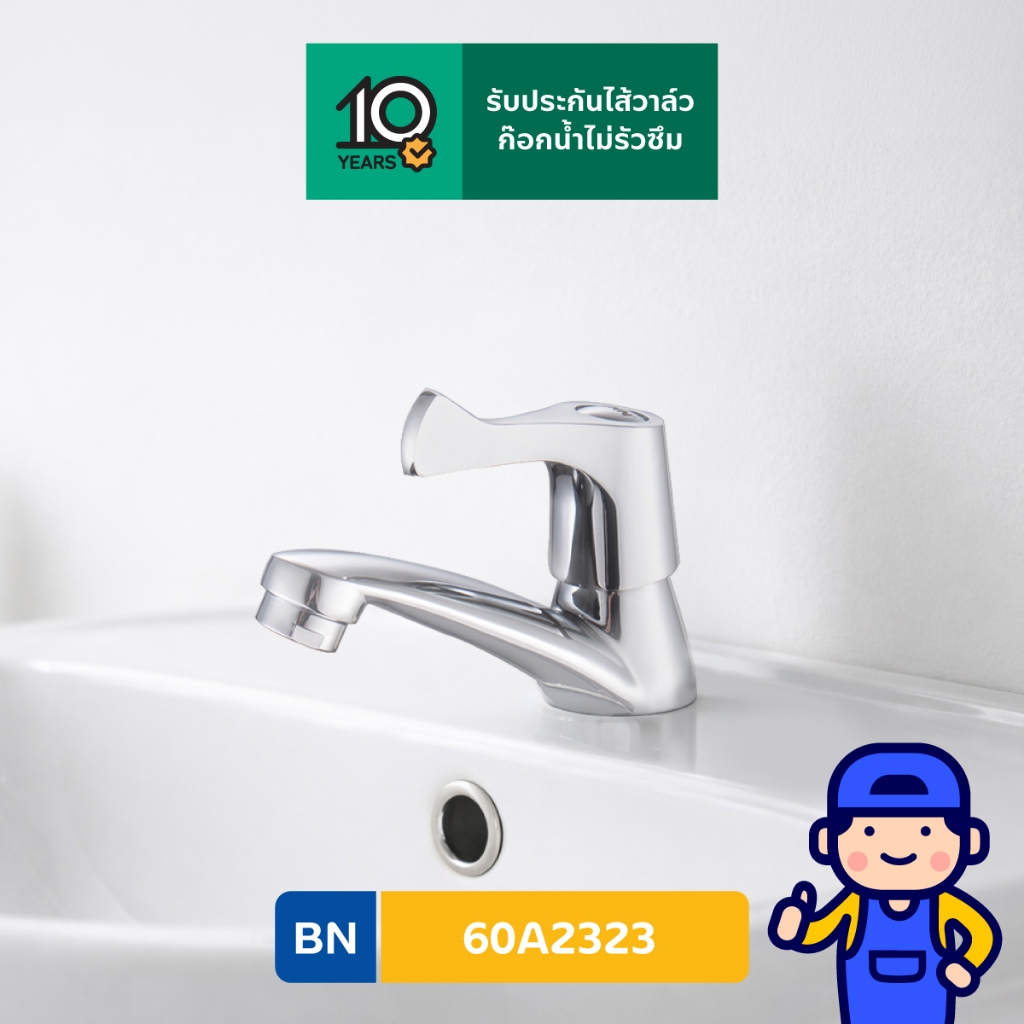 BEN 60A2323 ก๊อกน้ำเย็นเดี่ยว ติดตั้งบนอ่างได้ทุกยี่ห้อ สีโครเมียมเงา รับประกันวาล์วก๊อกน้ำไม่รั่วซึม 10 ปี