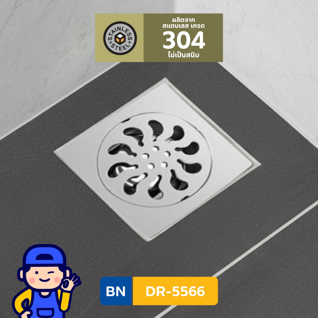 BEN DR-5566 ตะแกรงน้ำทิ้งพื้น ป้องกันกลิ่น ป้องกันเส้นผมตกลงท่อน้ำทิ้งไม่ตัน วัสดุสแตนเลส 304 MATT ทนทานไม่เป็นสนิม