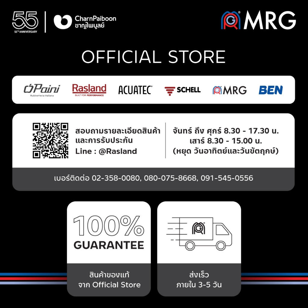 ITALY MRG 300333 300444 300555 300666 334545 330777 สายน้ำดี พรีเมียมสแตนเลสถัก 304 ขนาดยาว 30, 40, 45 ,50, 60 ,70 cm