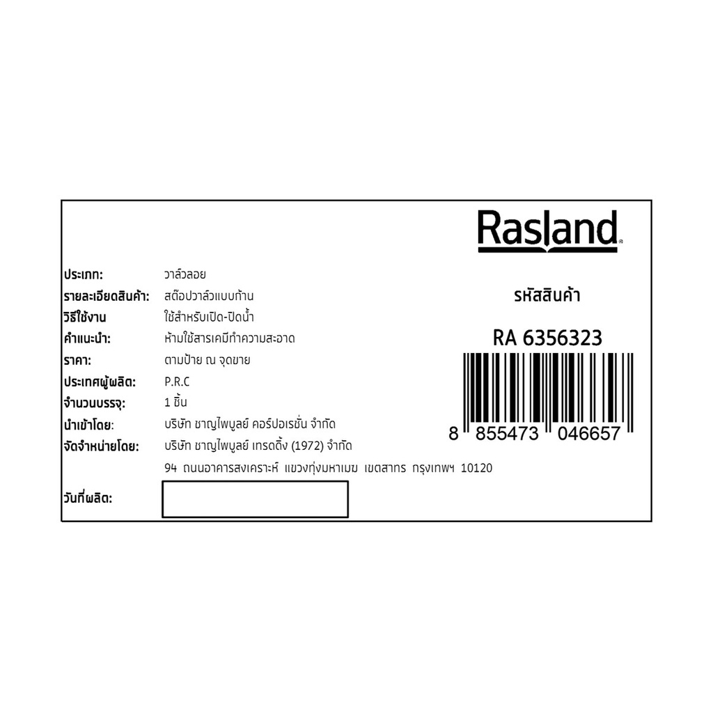 RASLAND สต็อปวาล์วแบบก้าน | RA 6356323