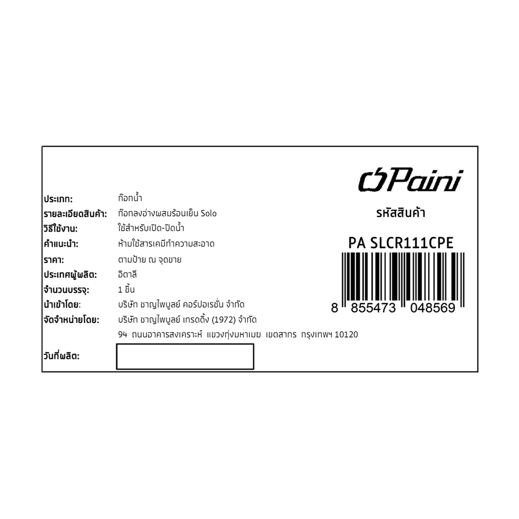 PAINI ก๊อกลงอ่างผสมร้อนเย็น Solo ใช้กับอ่างอาบน้ำ สวยงาม ทนทาน | PA SLCR111CPE