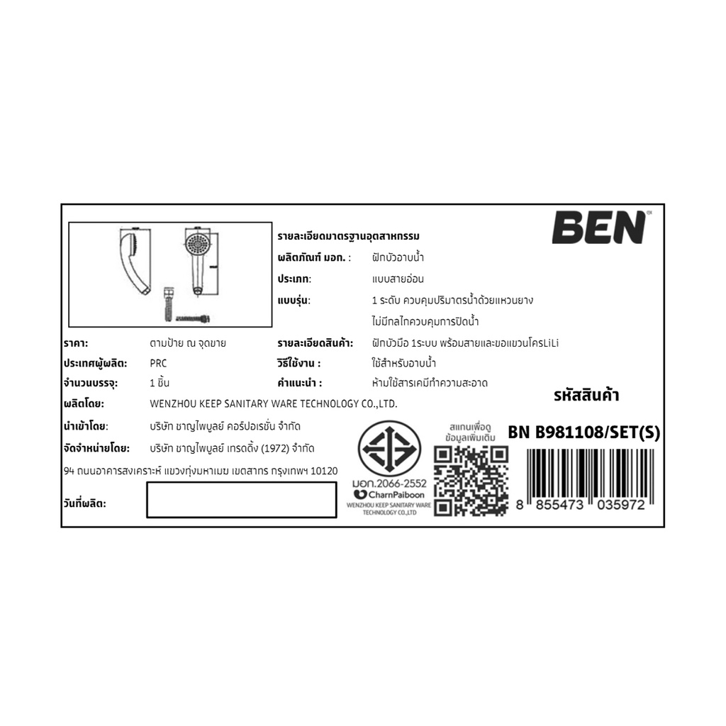 BEN ฝักบัวมือ 1ระบบ พร้อมสายและขอแขวนโคร Lili BN B981108/SET(S)
