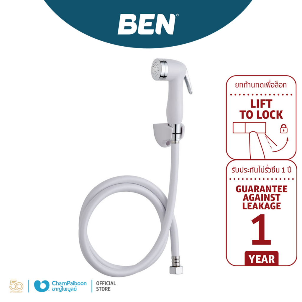 BEN ชุดสายฉีดชำระ พร้อมสายและขอแขวน สีขาว PLUS BN 12345SET-WH