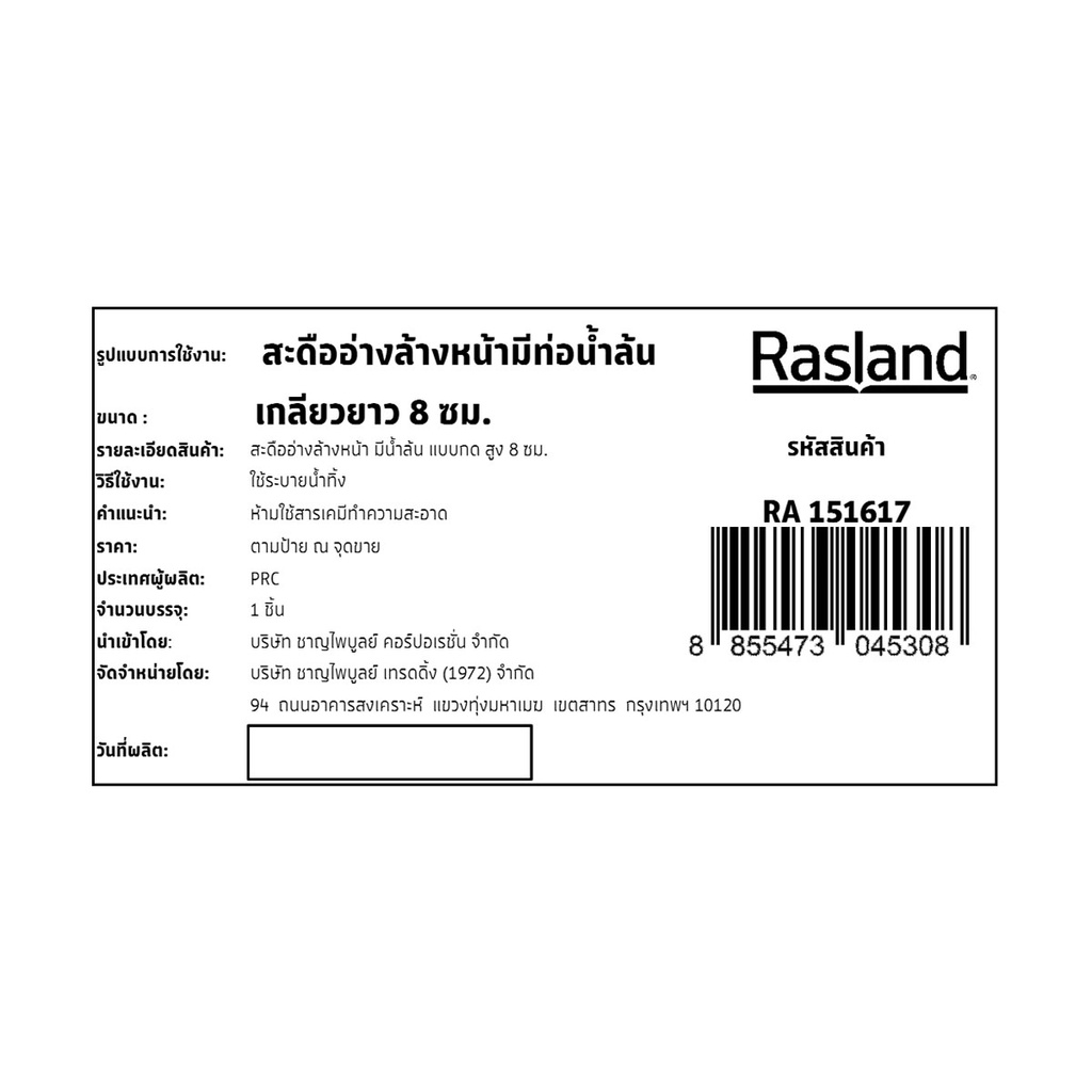 RASLAND สะดืออ่างล้างหน้า มีน้ำล้น แบบกด | RA 151617