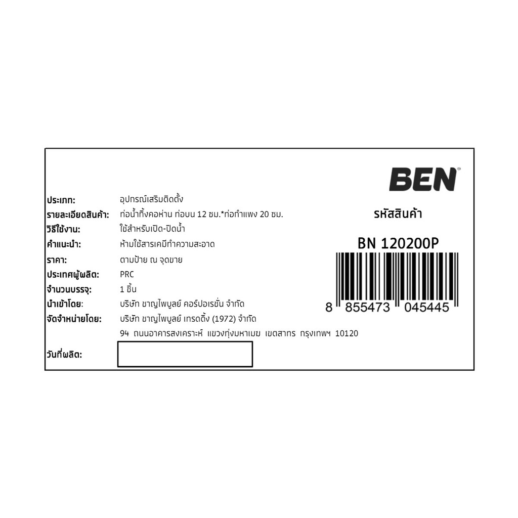 BEN ท่อน้ำทิ้งคอห่าน ท่อบน 15 ซม. * ท่อกำแพง 20 ซม. | BN 120200P