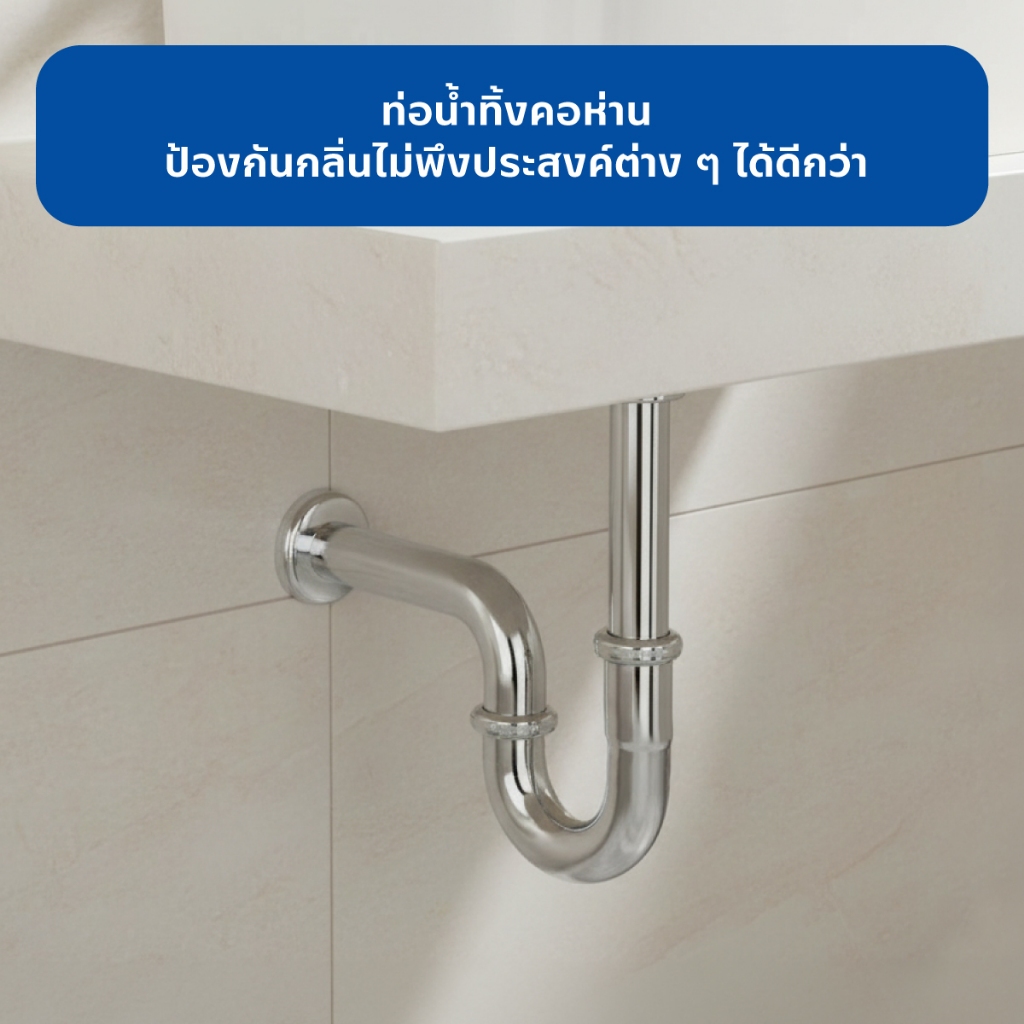 BEN 120200P ท่อน้ำทิ้งคอห่าน ท่อเข้ากำแพงยาว 20 ซม. BEN และป้องกันกลิ่นไม่พึงประสงค์ต่าง ๆ ได้ดีกว่า สแตนเลสสีโครเมียม