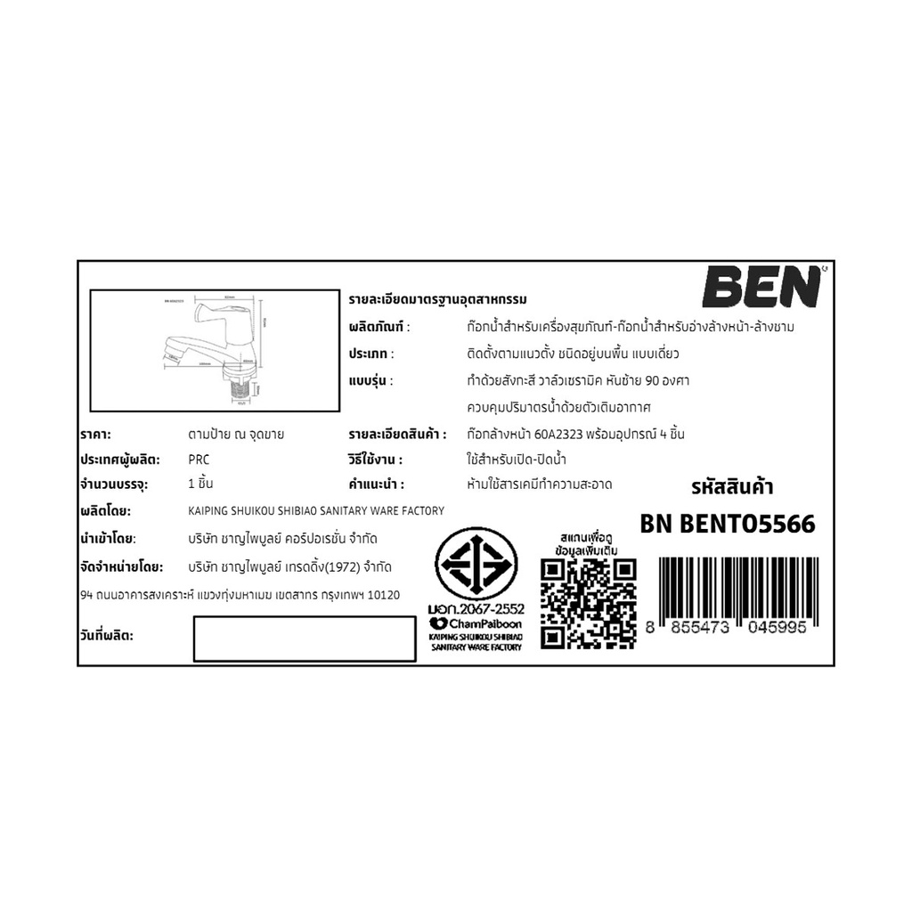 BEN ชุดก๊อกล้างหน้าพร้อมอุปกรณ์ 4 ชิ้น | BN BENTO5566