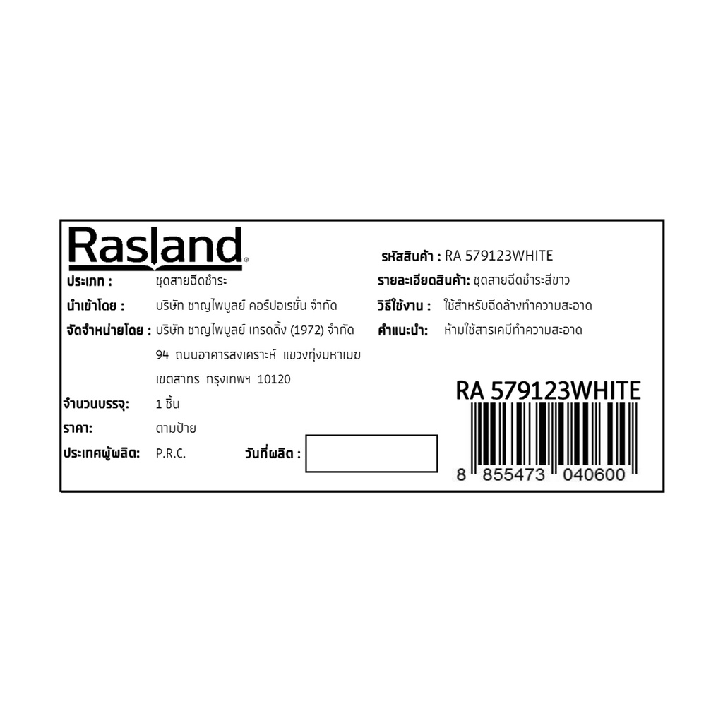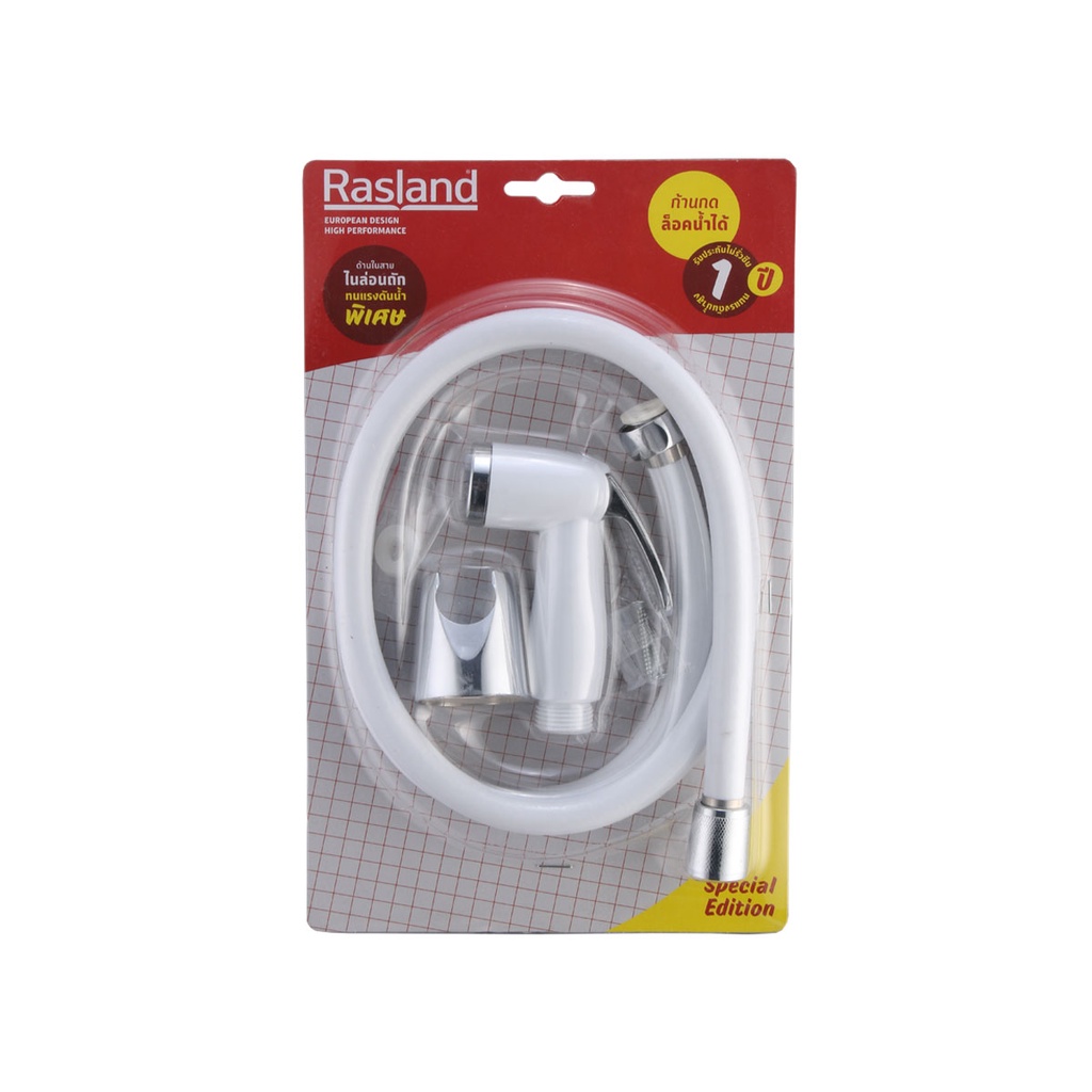 RASLAND ชุดสายฉีดชำระสีขาว พร้อมสายและขอแขวนครบชุด TULIP RA 579123WHITE