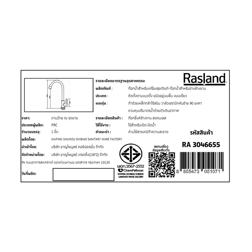 ก๊อกอ ่างล้างจาน สแตนเลส ปรับทิศทางได้ RASLAND แข็งแรงทนทาน รับประกันไส้วาล์ว 10 ปี ใช้ได้กับซิงก์ทุกยี่ห้อ | RA 3046655