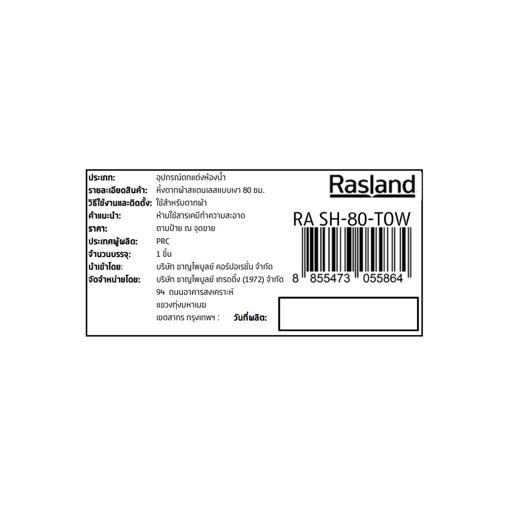 RASLAND หิ้งตากผ้าสแตนเลสแบบเงา 80 ซม. RA SH-80-TOW