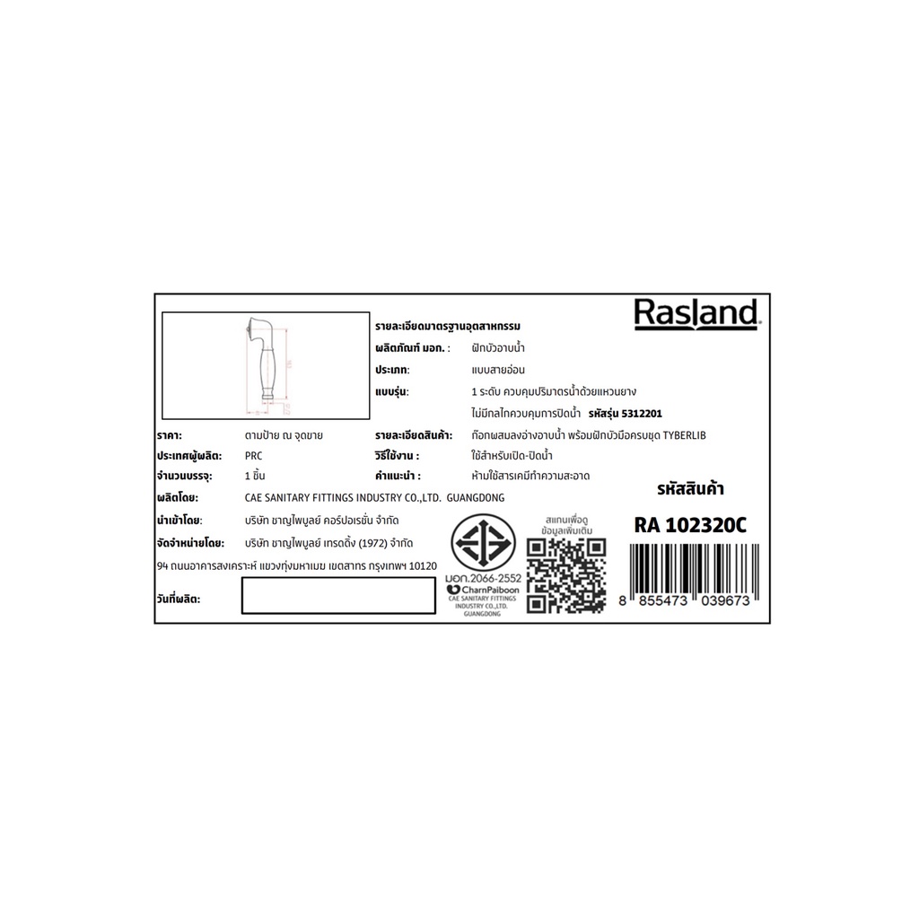 RASLAND ก็อกอาบน้ำผสม พร้อมฝักบัวชุด รุ่น TYBERLIB | RA 102320C