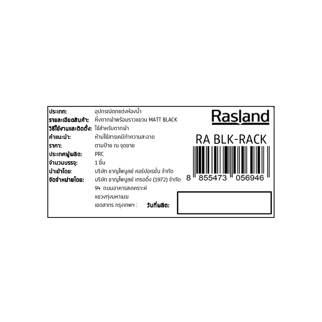 RASLAND หิ้งตากผ้าพร้อมราวแขวน MATT BLACK RA BLK-RACK