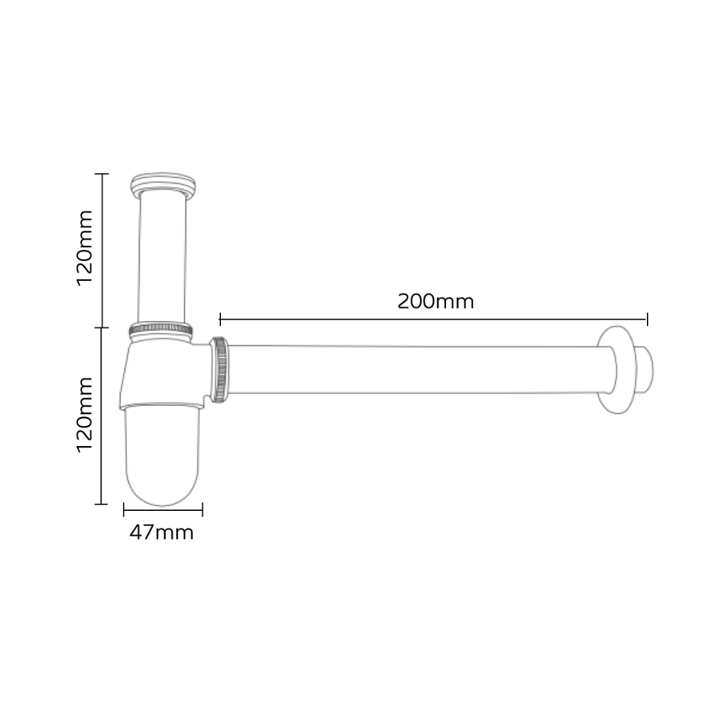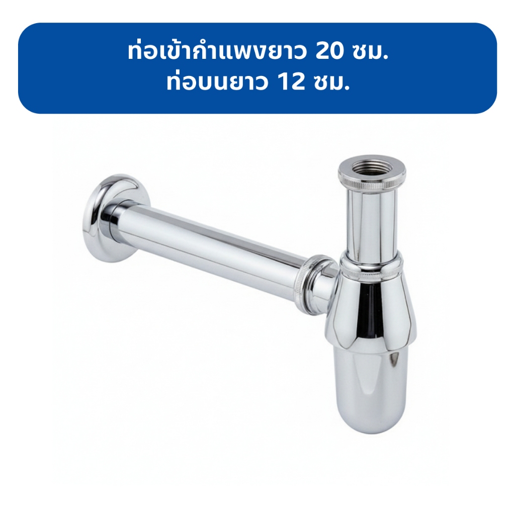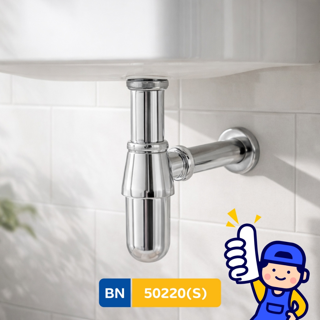 BEN 50220(S) ท่อน้ำทิ้งกระปุกกันกลิ่นได้ดี ส่วนกระปุกหมุนถอดทำความสะอาดได้ สีโครเมียมเงา ท่อเข้ากำแพง 20 cm ท่อบน 12 cm