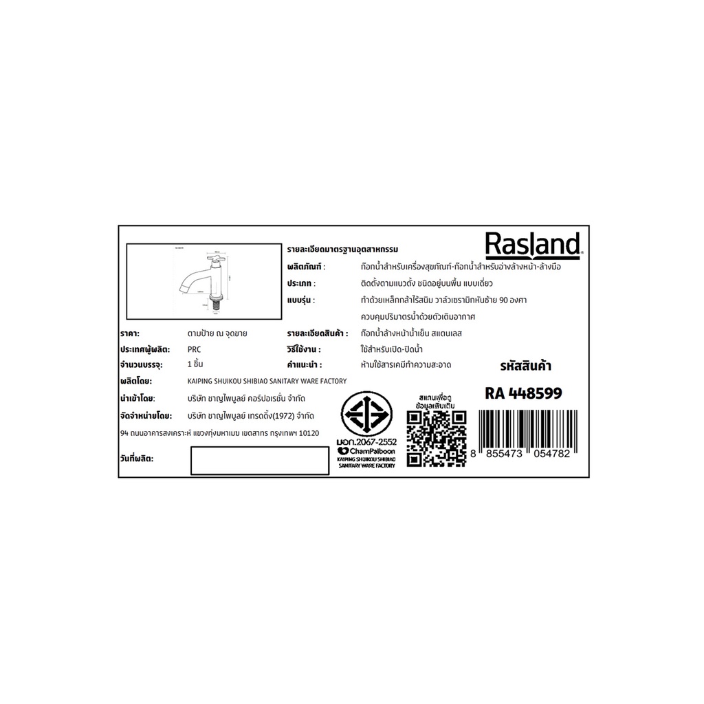 RASLAND ก๊อกน้ำล้างหน้าน้ำเย็น สแตนเลส | RA 448599