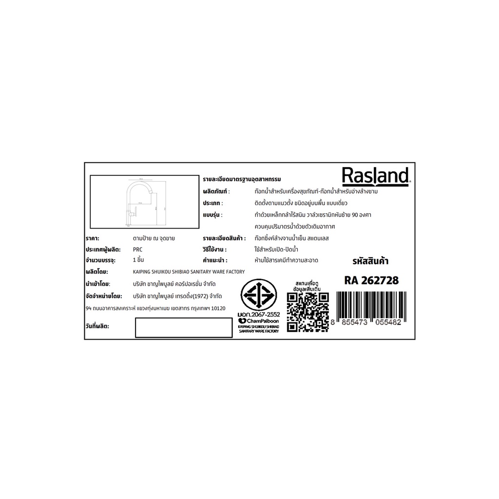 ก๊อกซ ิ้งค์น้ำเย็น เคาน์เตอร์ สแตนเลสด้าน RASLAND สำหรับติดตั้งอ่างซิ้งค์ทั่วไป สามารถใช้ได้กับซิงค์ทุกยี่ห้อ | RA 262728