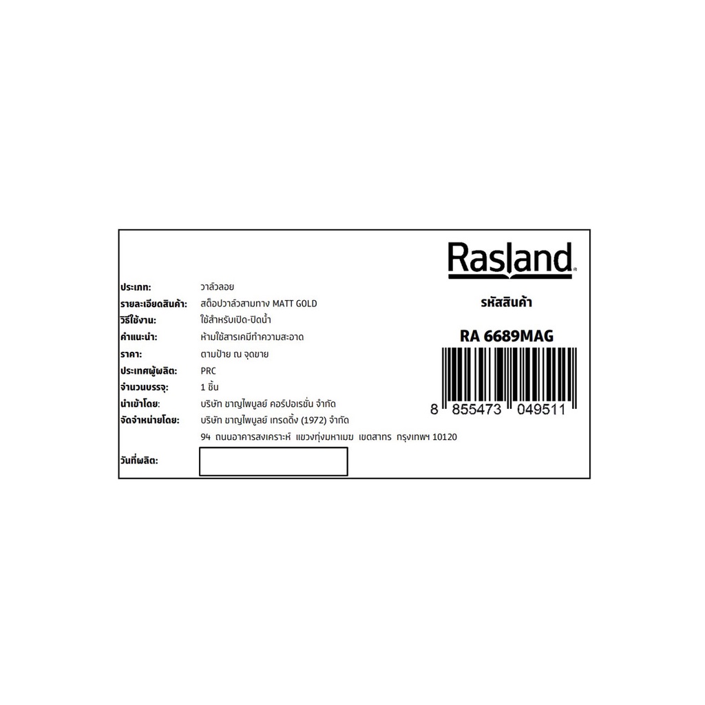 RASLAND สต็อปวาล์วสามทาง MATT GOLD | RA 6689MAG