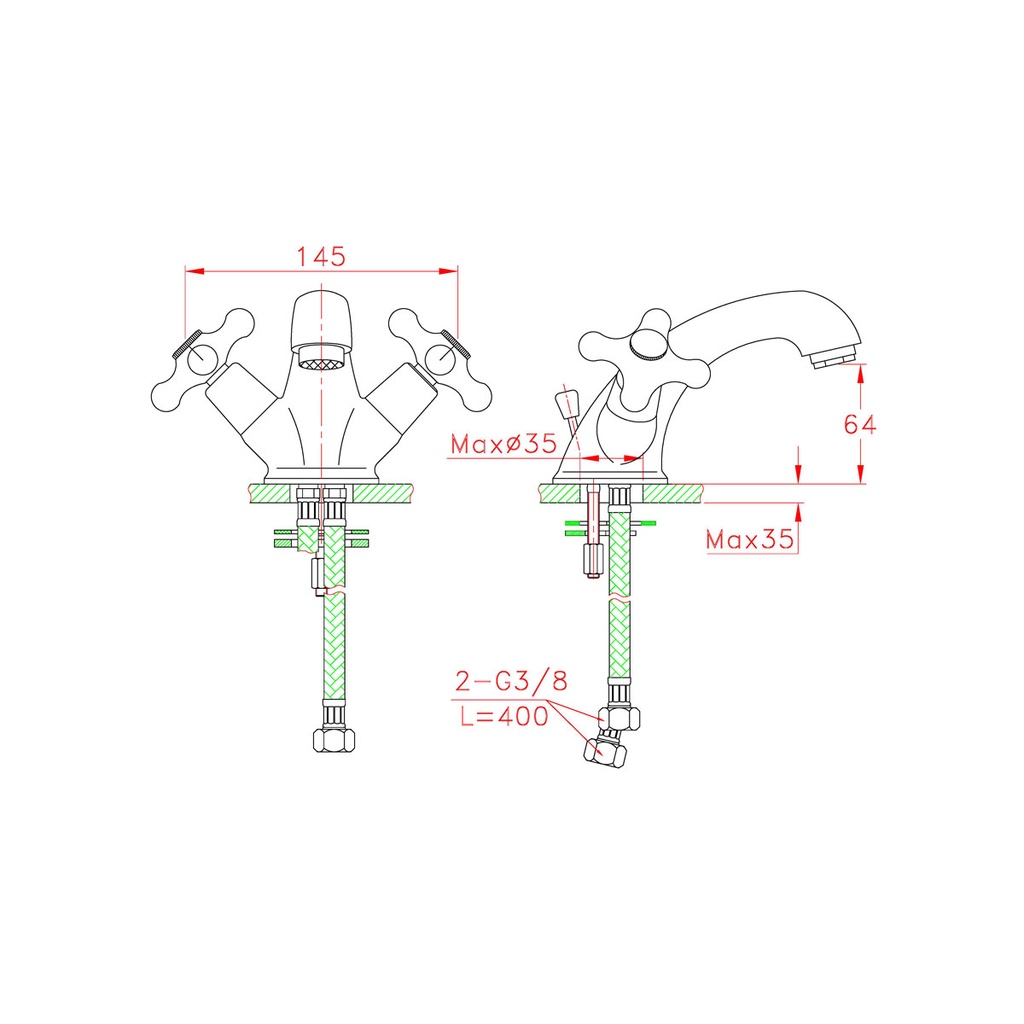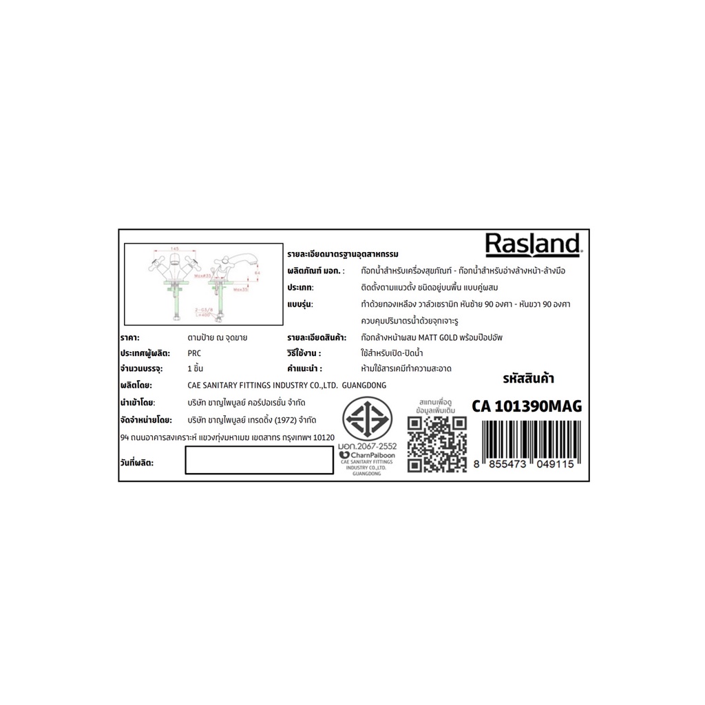 RASLAND ก๊อกล้างหน้าผสม MATT GOLD พร้อมป๊อปอัพ | CA 101390MAG