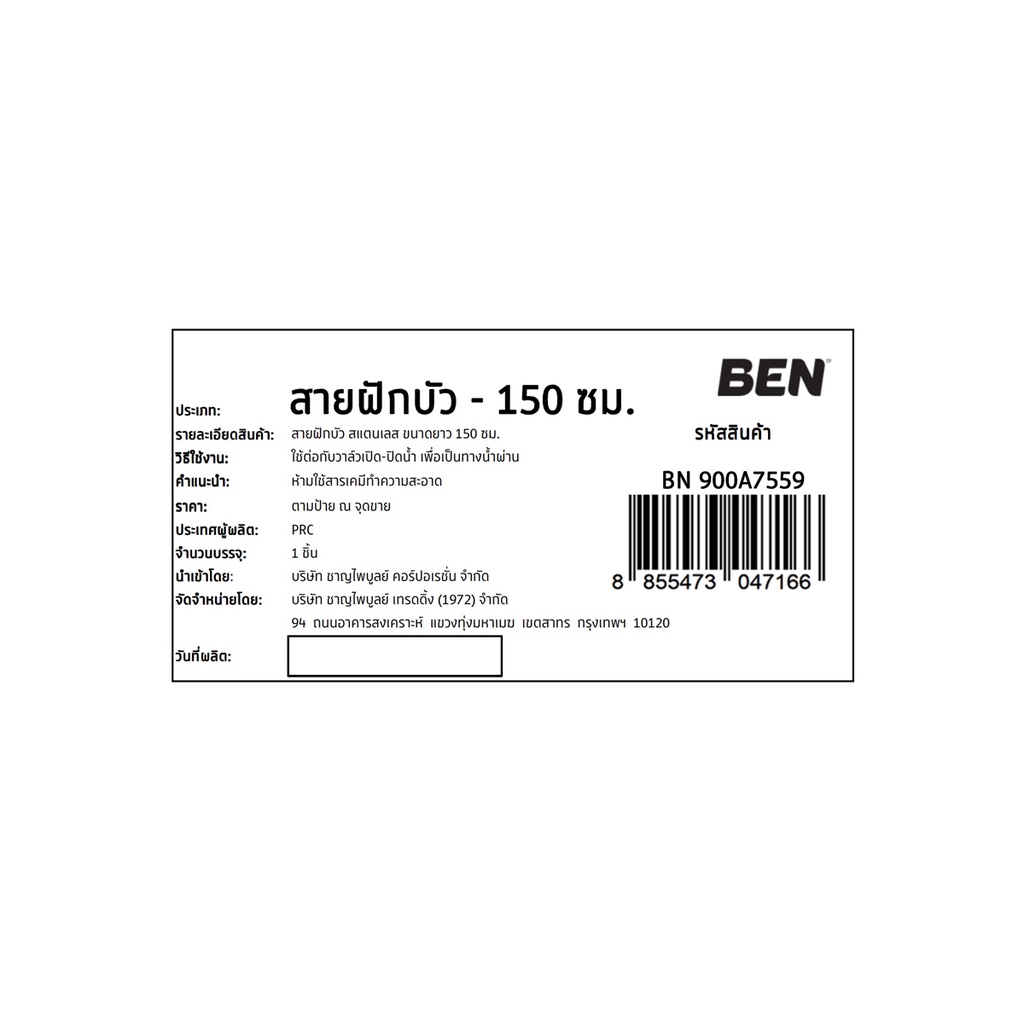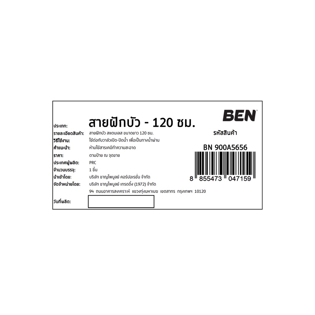 BEN สายฝักบัว สแตนเลส มี 3 ขนาดยาว 120, 150 และ 200 ซม. | BN 900A5656 BN 900A7559 BN 900A2356