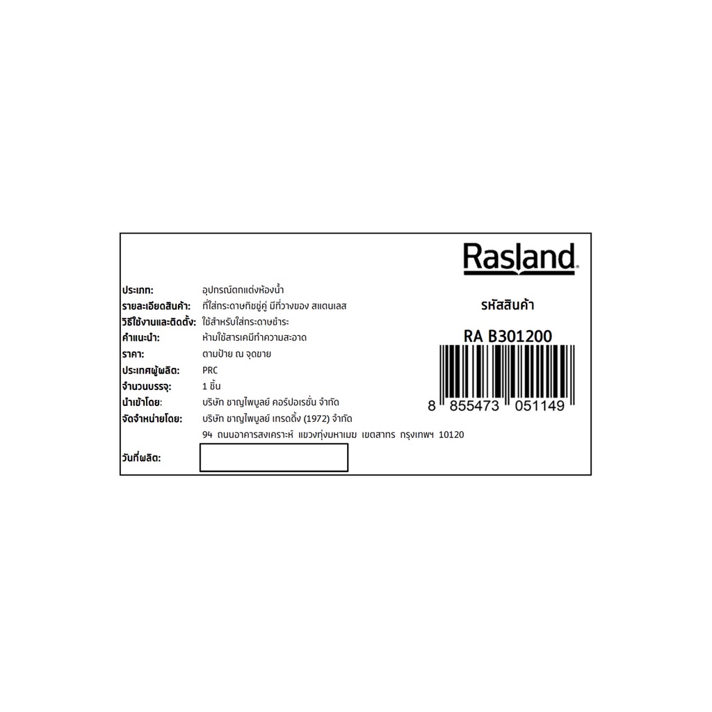RASLAND ที่ใส่กระดาษทิชชู่คู่ มีที่วางของ สแตนเลส RA B301200
