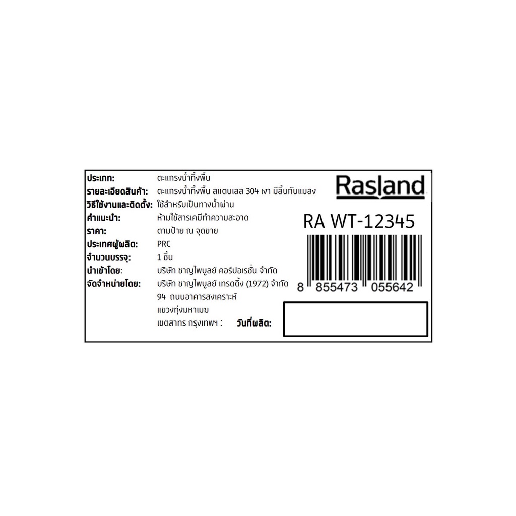 RASLAND ตะแกรงน้ำทิ้งพื้น สแตนเลส 304 เงา มีลิ้นกันแมลง | RA WT-12345
