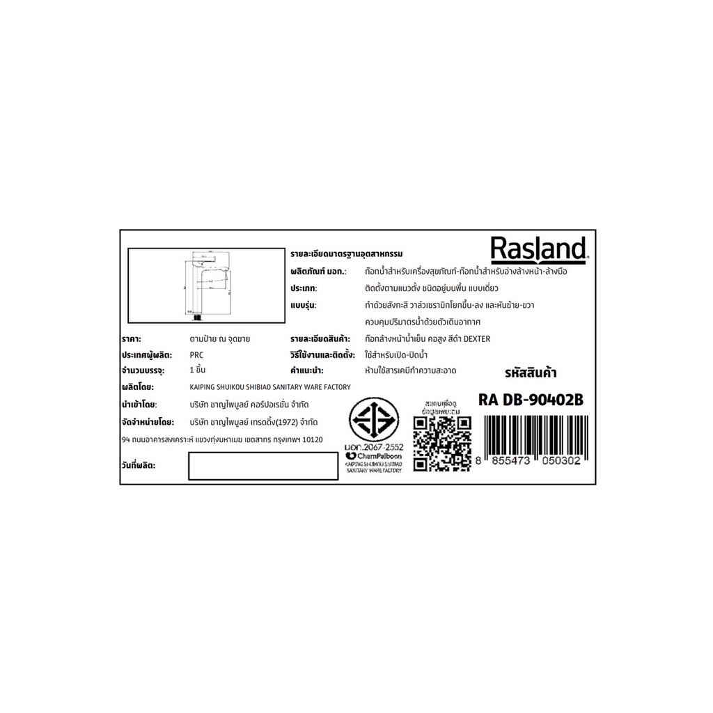 RASLAND ก๊อกล้างหน้าน้ำเย็น คอสูง สีดำ DEXTER | RA DB-90402B