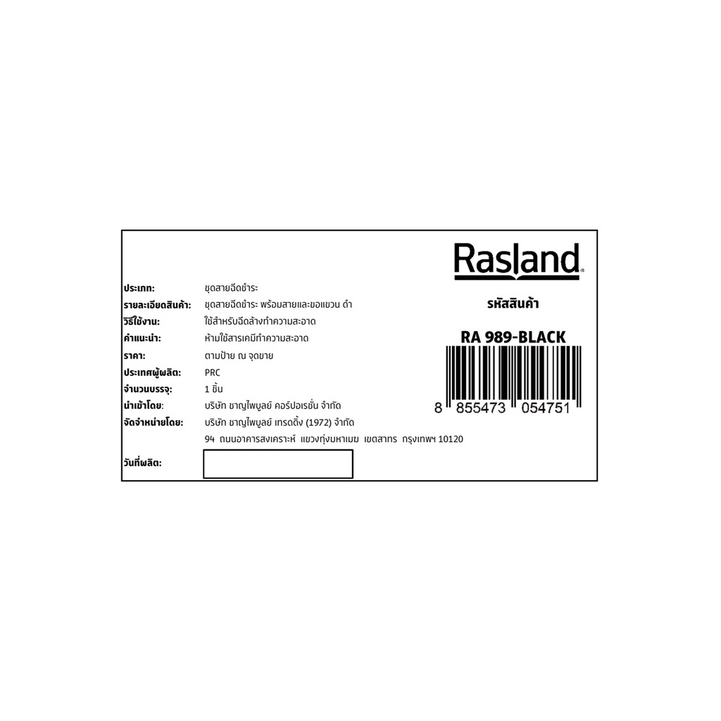 RASLAND ชุดสายฉีดชำระ พร้อมสายและขอแขวน ดำ RA 989-BLACK