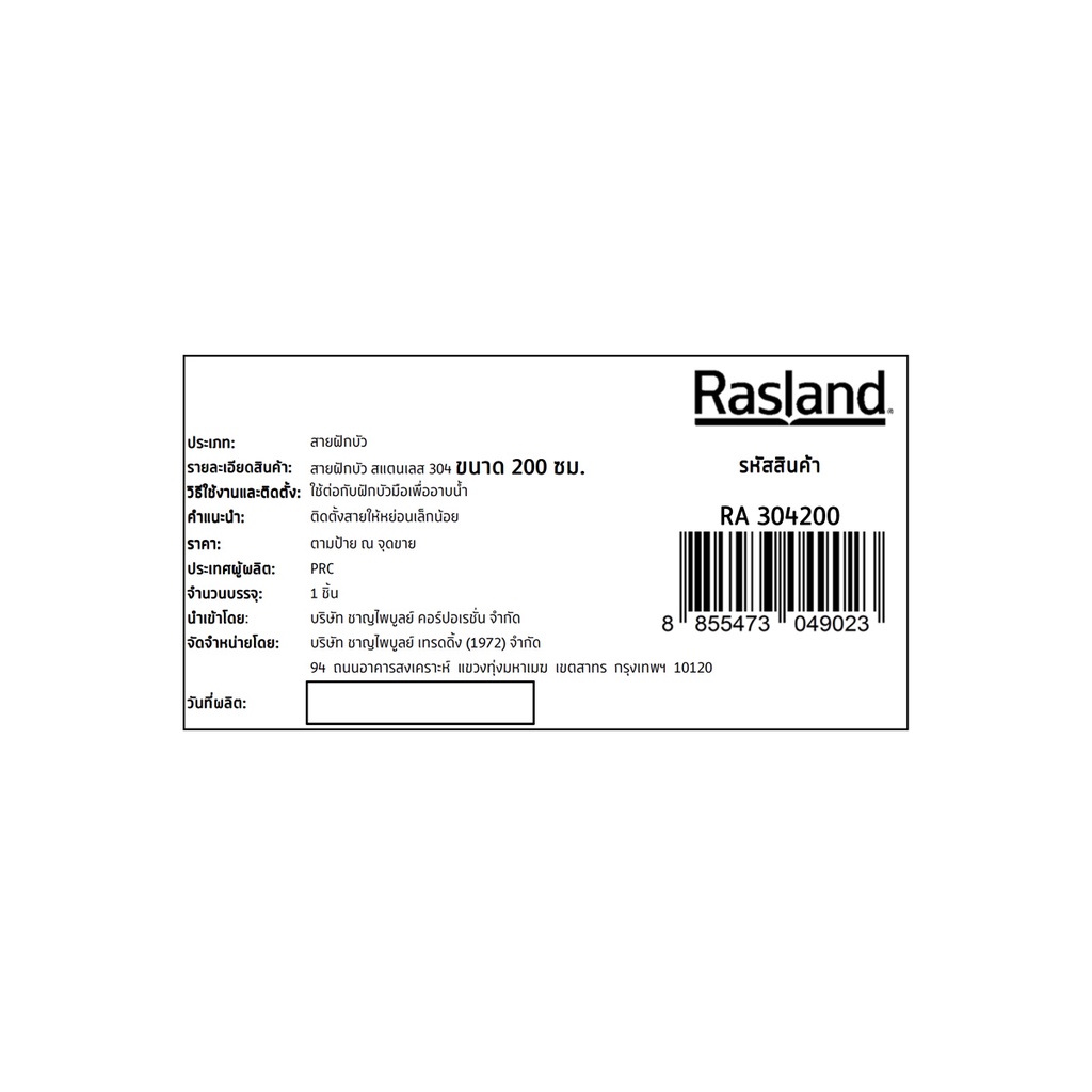 RASLAND สายฝักบัว สแตนเลส 304 ขนาด 200 ซม. | RA 304200