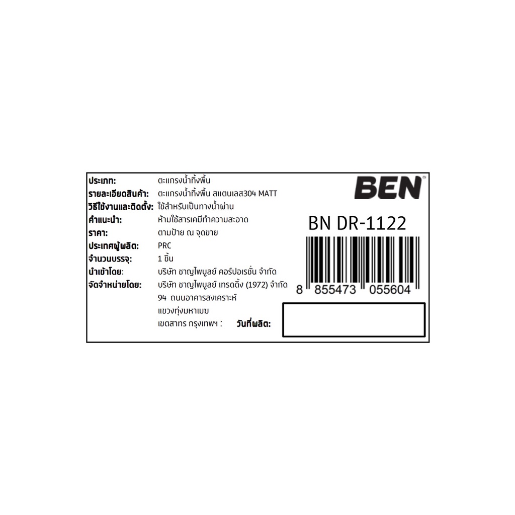 BEN ตะแกรงน้ำทิ้งพื้น สแตนเลส304 MATT BN DR-1122
