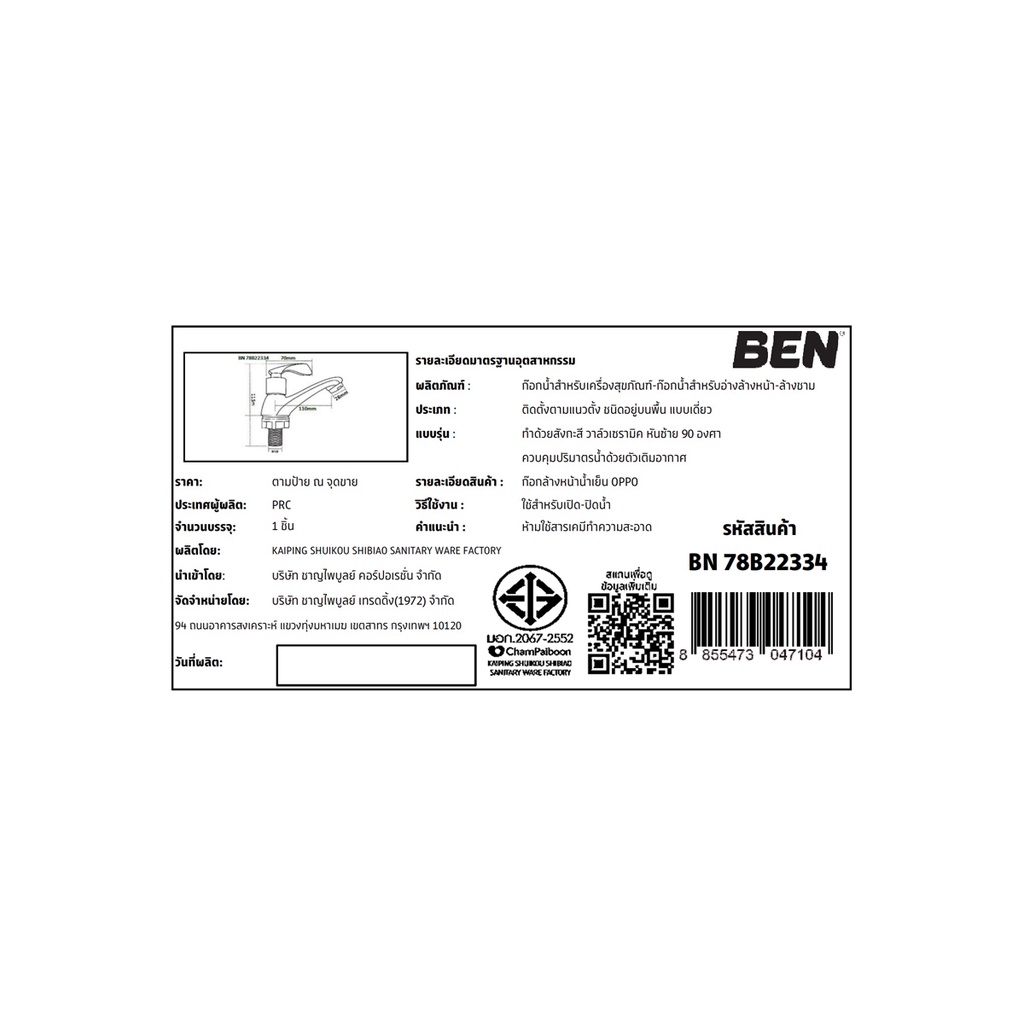 BEN ก๊อกล้างหน้าน้ำเย็น OPPO | BN 78B22334