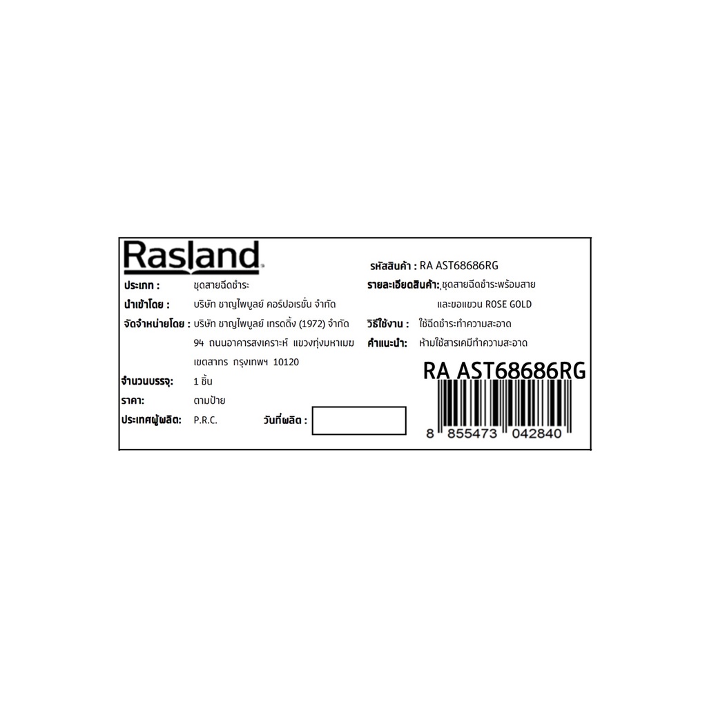 RASLAND ชุดสายฉีดชำระ พร้อมสายและขอแขวน ROSE GOLD RA AST68686RG