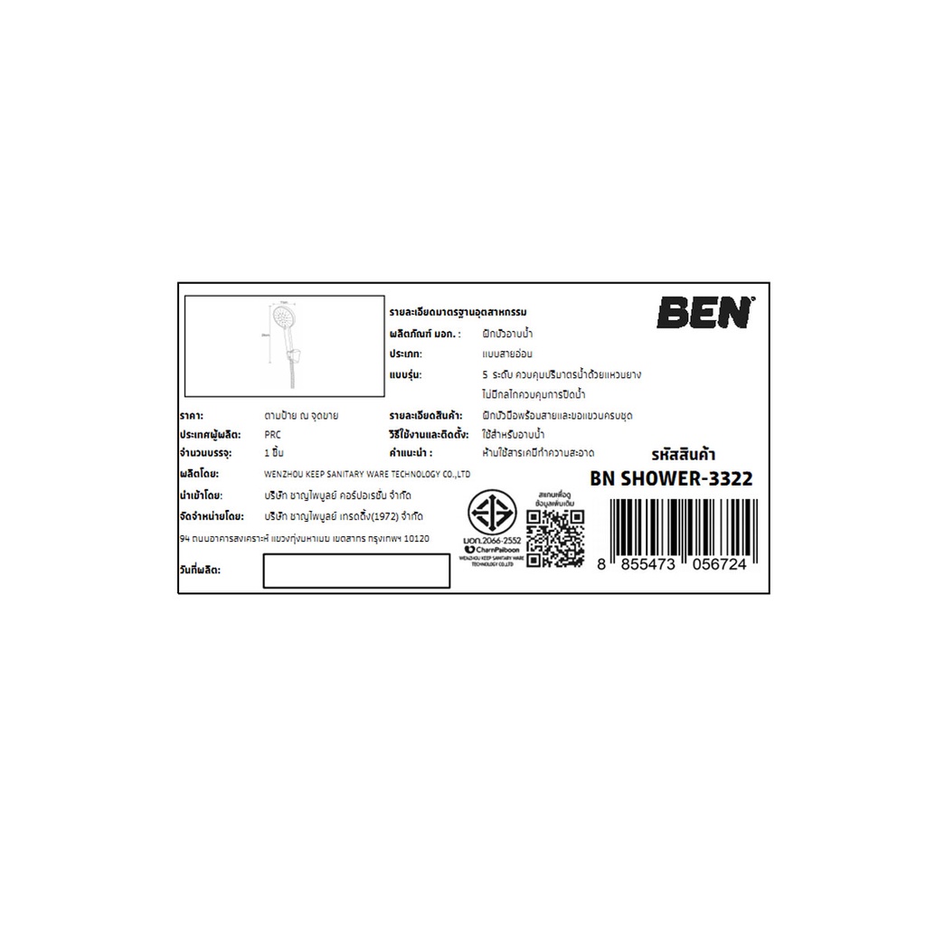 BEN ฝักบัวมือพร้อมสายและขอแขวนครบชุด BN SHOWER-3322