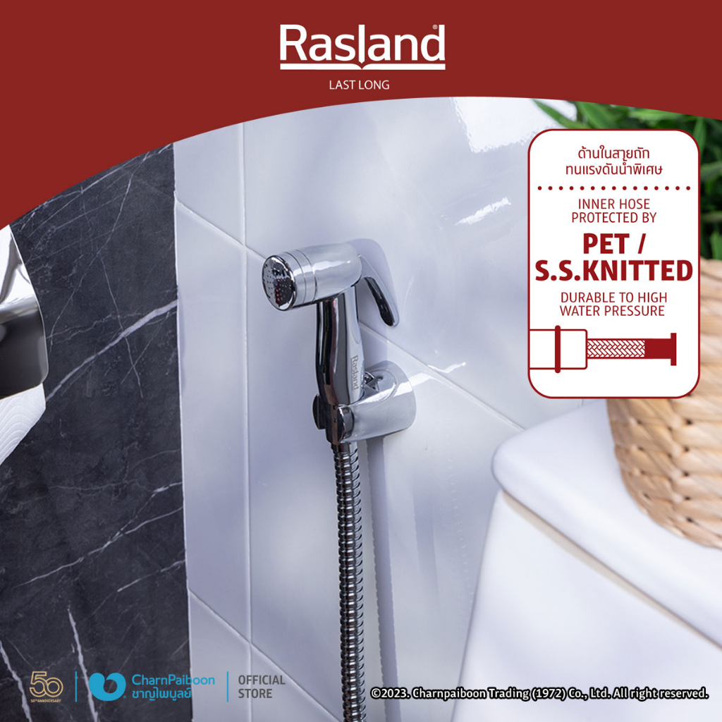 RASLAND ชุดสายฉีดชำระโครเมียม ครบชุด พร้อมสต็อปวาล์วสามทาง | RA VALET777
