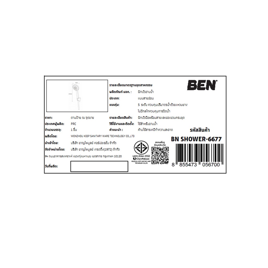 BEN ฝักบัวมือพร้อมสายและขอแขวนครบชุด BN SHOWER-6677
